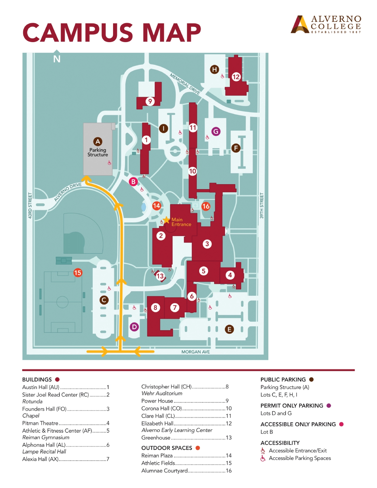 Welcome to the Alverno College campus Map, your guide to navigating our 46-acre campus in Milwaukee. This map highlights key academic buildings like Founders Hall and the Sister Joel Read Center , located south of Memorial Drive.