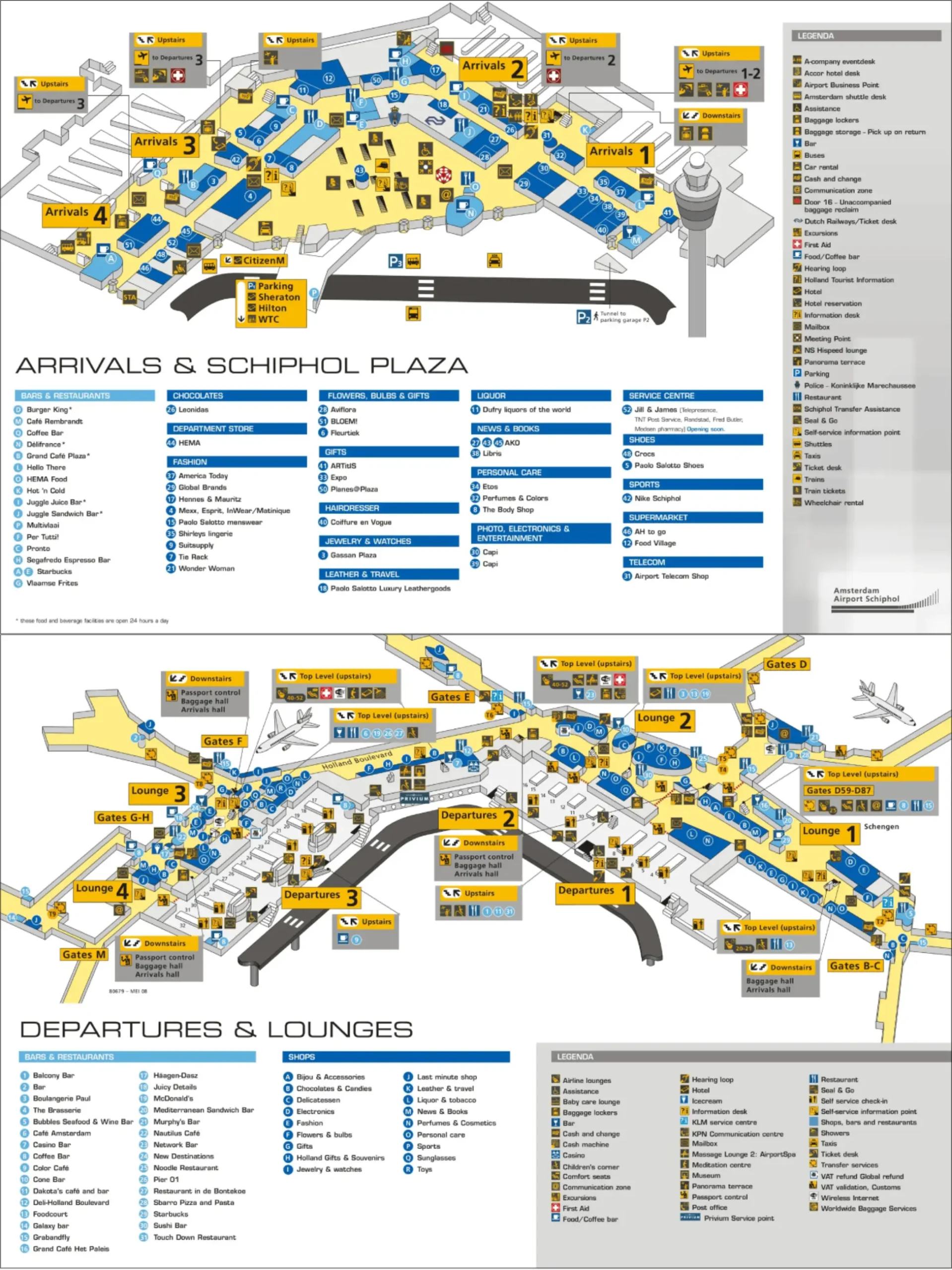 Amsterdam Airport Terminal Departures Map 2025-2024