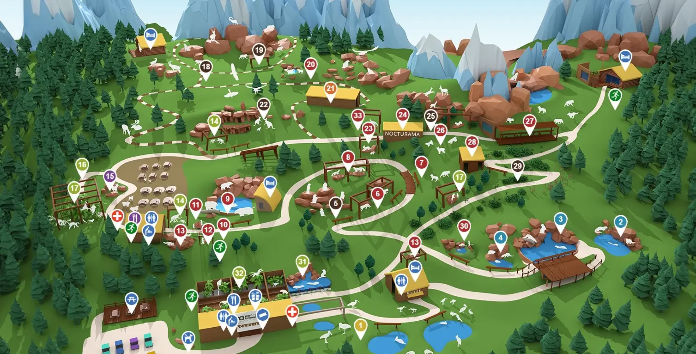 Animal Park of the Pyrenees Map 2023 updates include the arrival of new species such as bush dogs and bat-eared foxes, along with the creation of a specially designed enclosure for the bush dogs featuring a large pool and an elevated walkway for visitors. The park also enhanced its immersive aviaries, allowing guests to observe colorful birds up close. These additions aimed to enrich the visitor experience and support conservation efforts for threatened species.