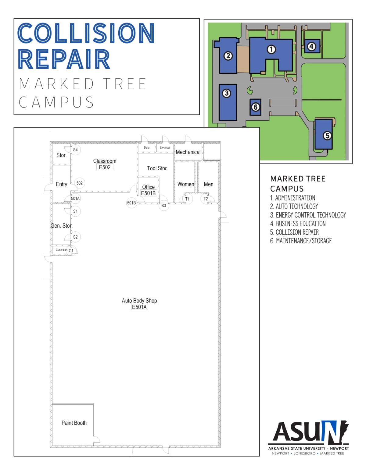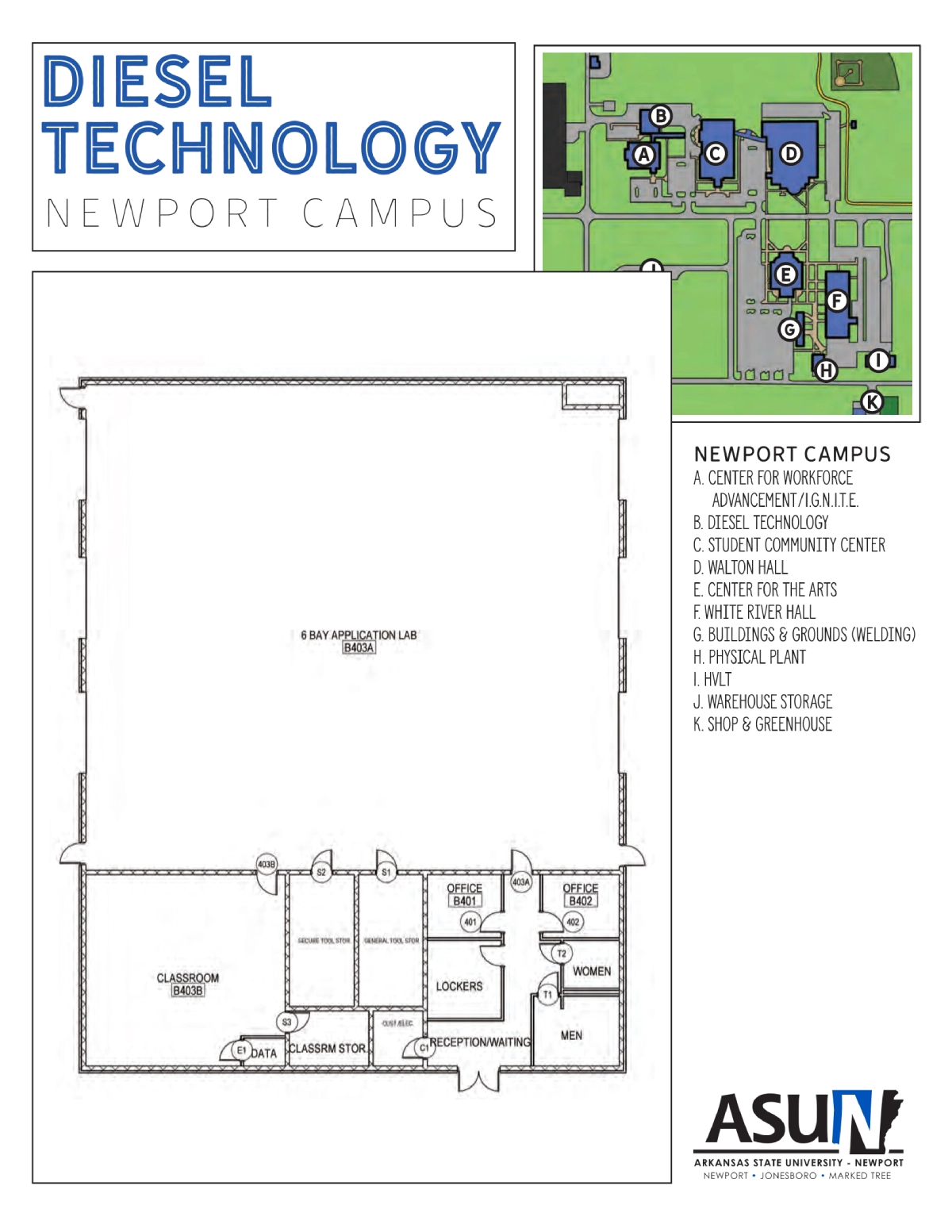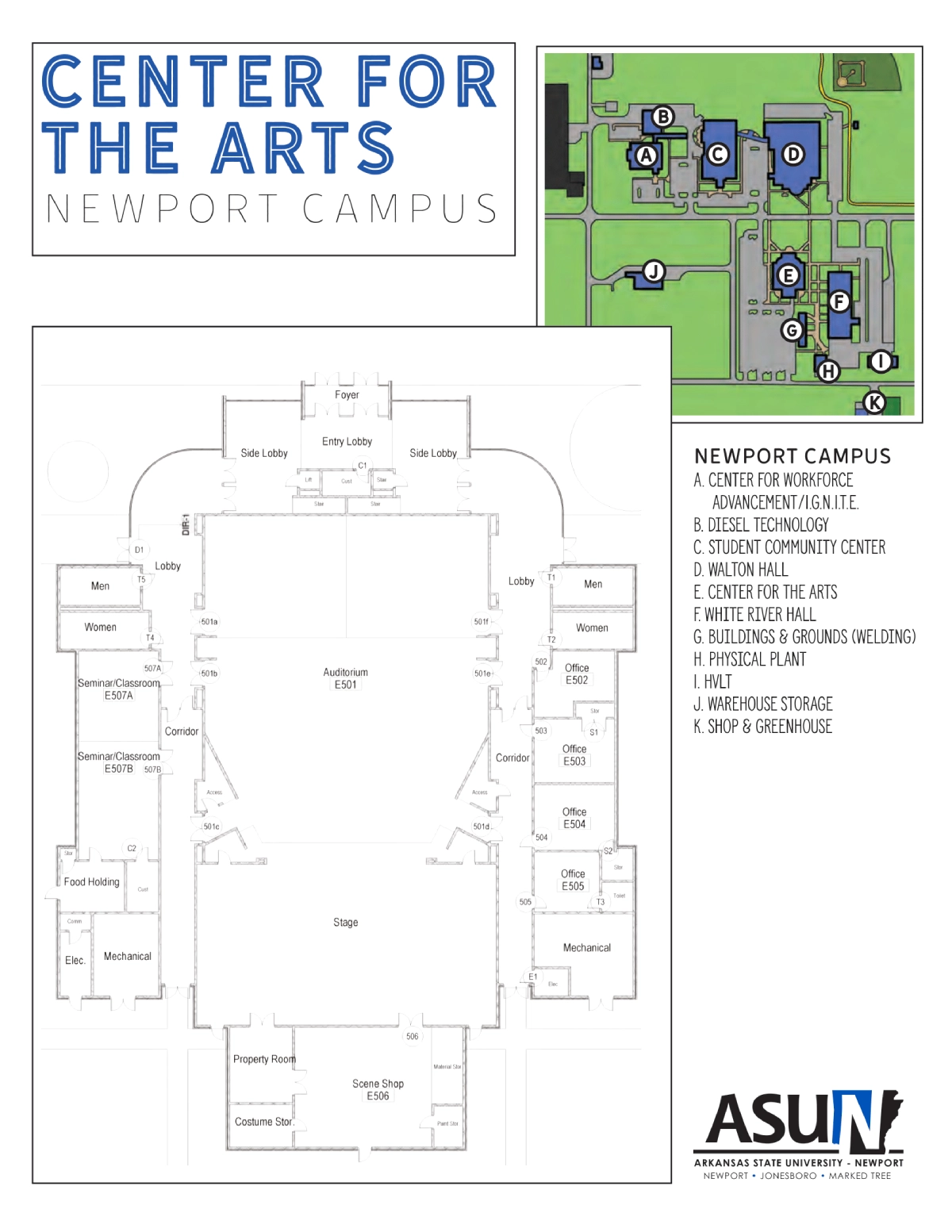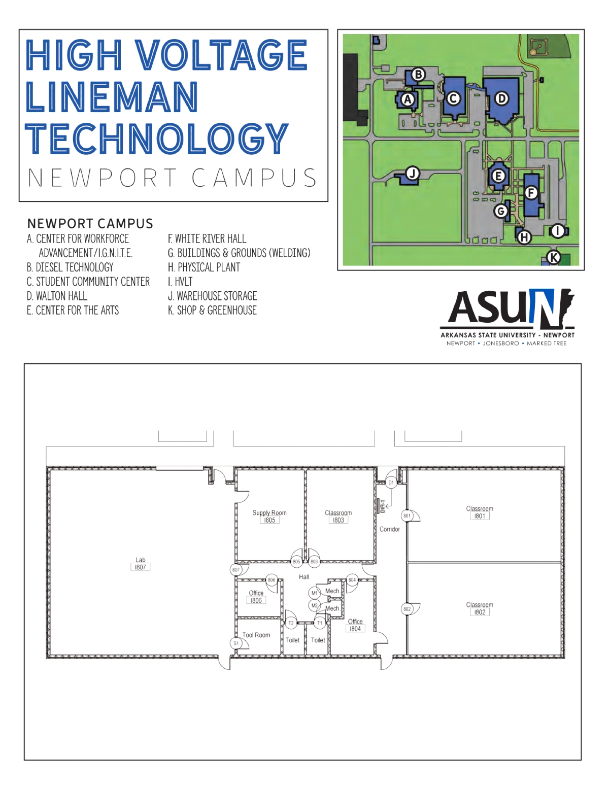 ASUN operates locations in addition to the main Newport campus. The maps below provide specific layouts for the Jonesboro and Marked Tree sites.