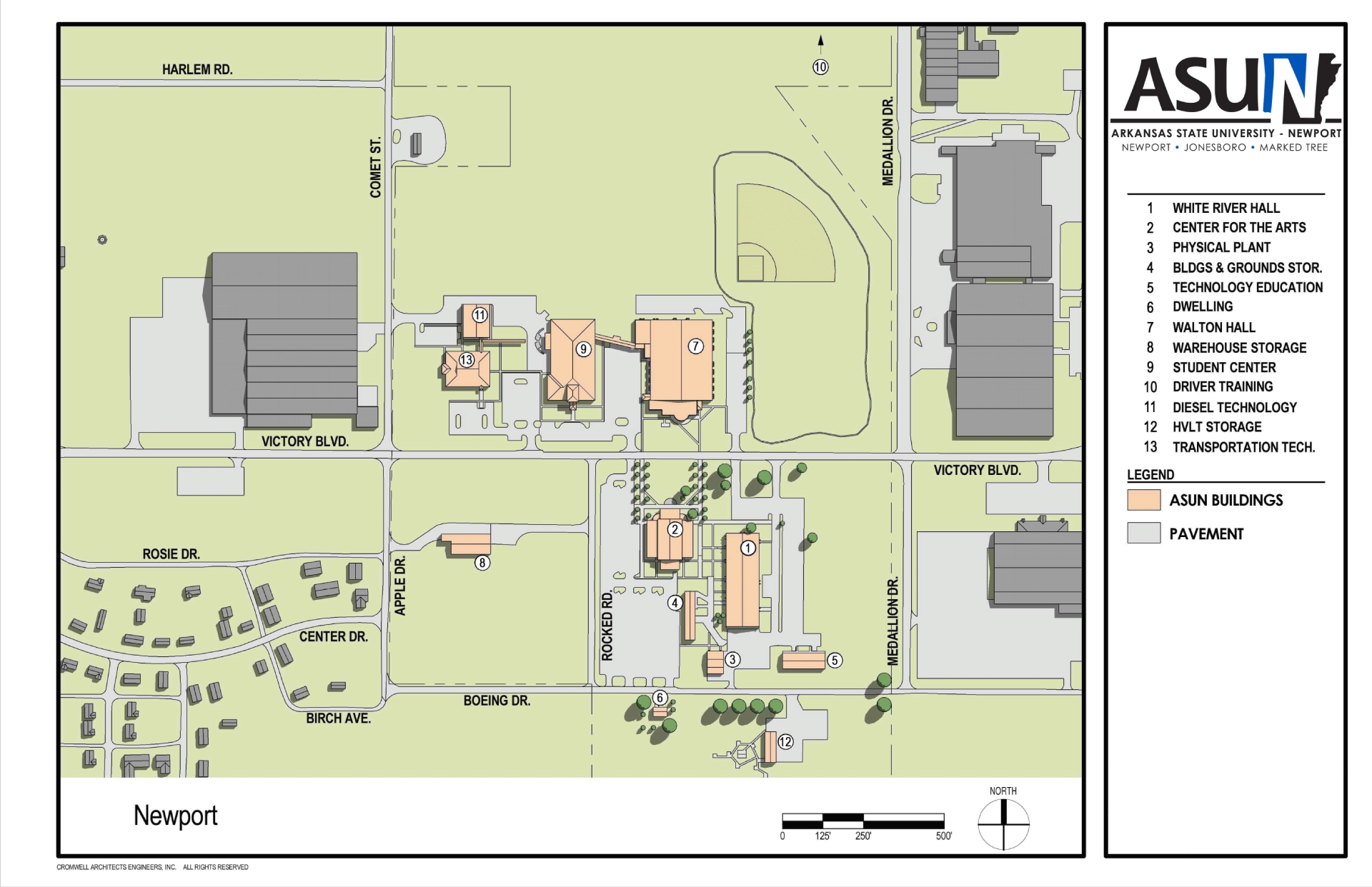 This archive contains previous versions of the Arkansas State University Newport Campus Map. These maps are available for historical reference and to track campus development over time.