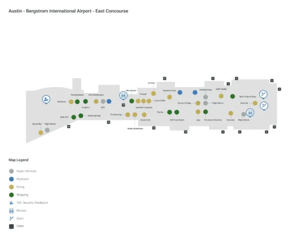 Austin Bergstrom International Airport Terminal 1 East Concourse Map 2025-2024