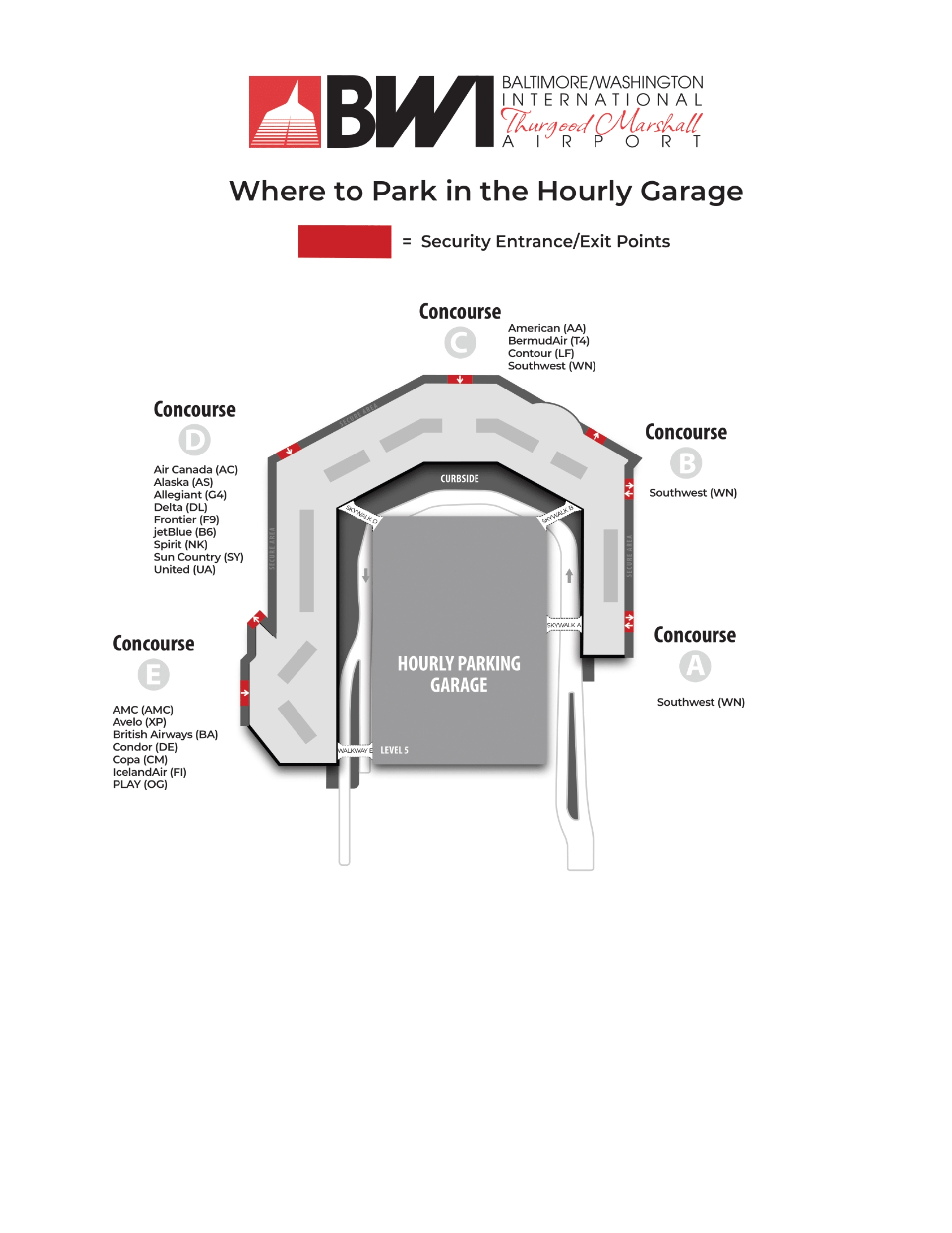 Baltimore Washington International Airport Hourly Parking Map 2025-2024