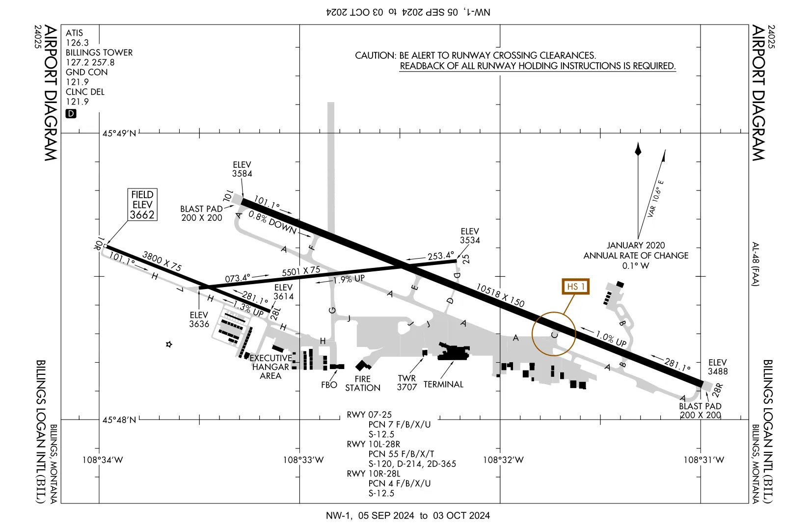 Billings Logan International Airport’s 2025 changes include the reconstruction and extension of crosswind runway 7/25 beginning in May and continuing through fall, the start of a $7.5 million air cargo pad expansion adding a fifth pad, and the replacement of all incandescent runway lighting and signs with LED lighting.
