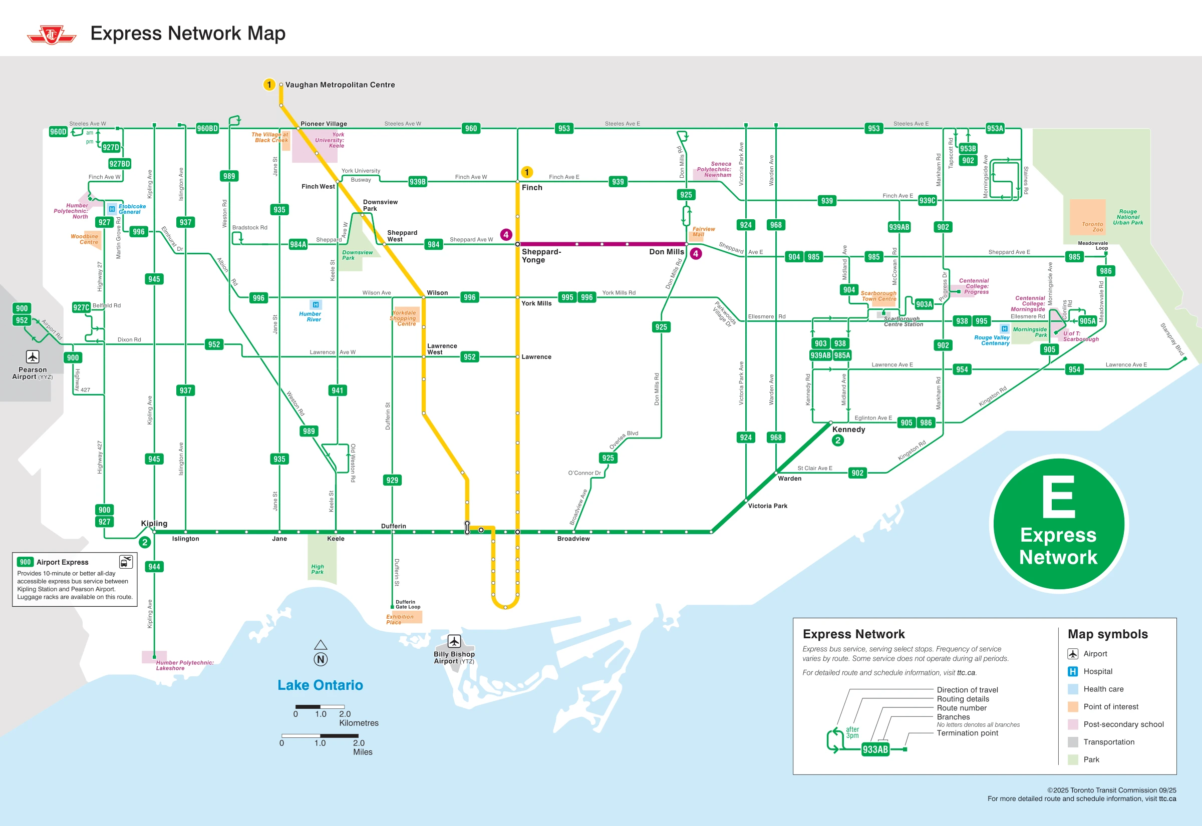 Billy Bishop Toronto City Centre Airport Express Network Map 2025