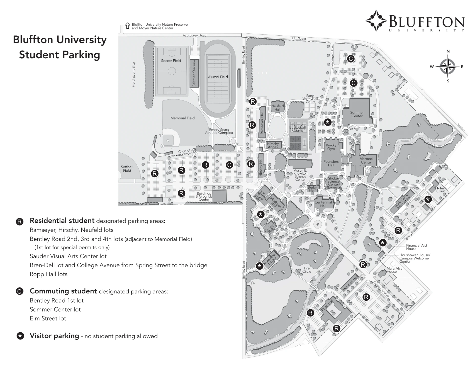 Bluffton University Parking Map 2024