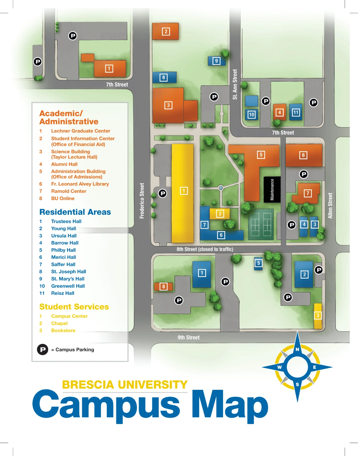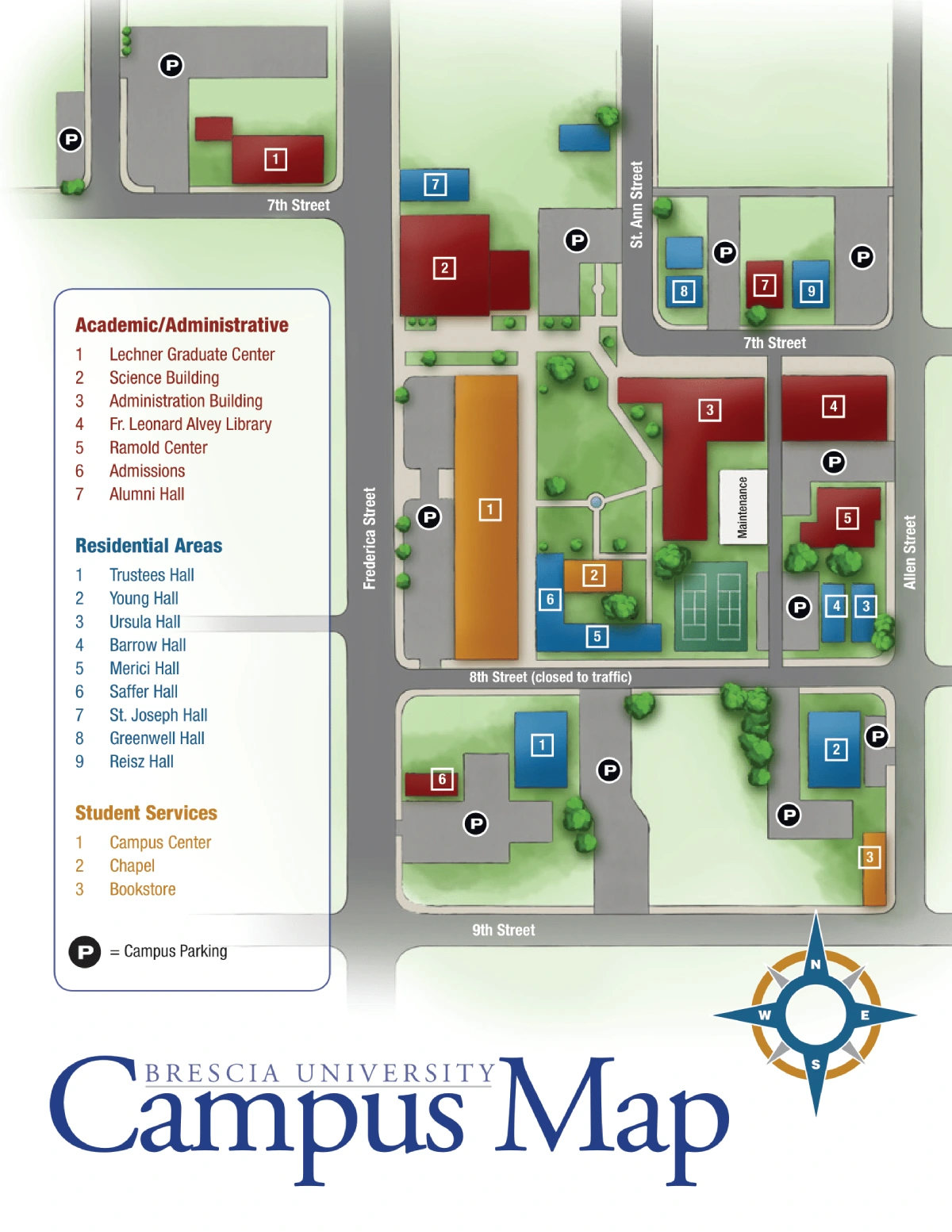 This archive provides access to previous versions of the Brescia University campus map for historical reference or comparison.