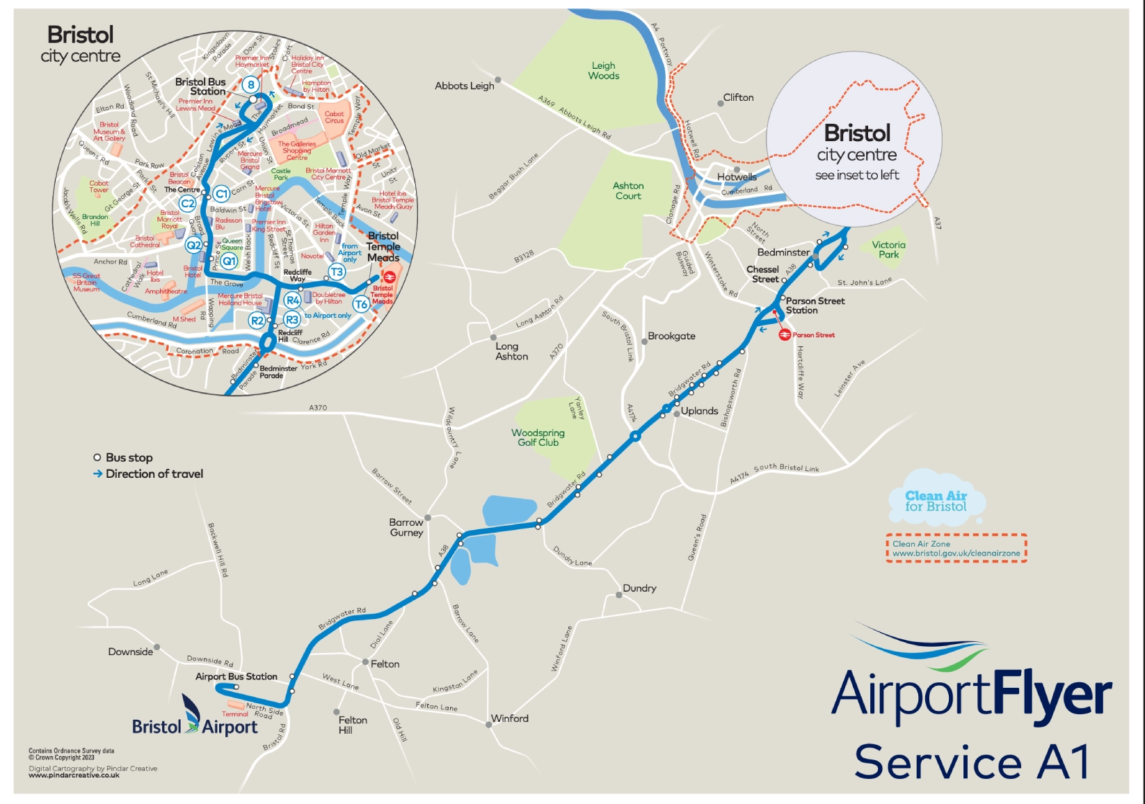 Bristol Airport Flyer Service A1 Map 2025-2023