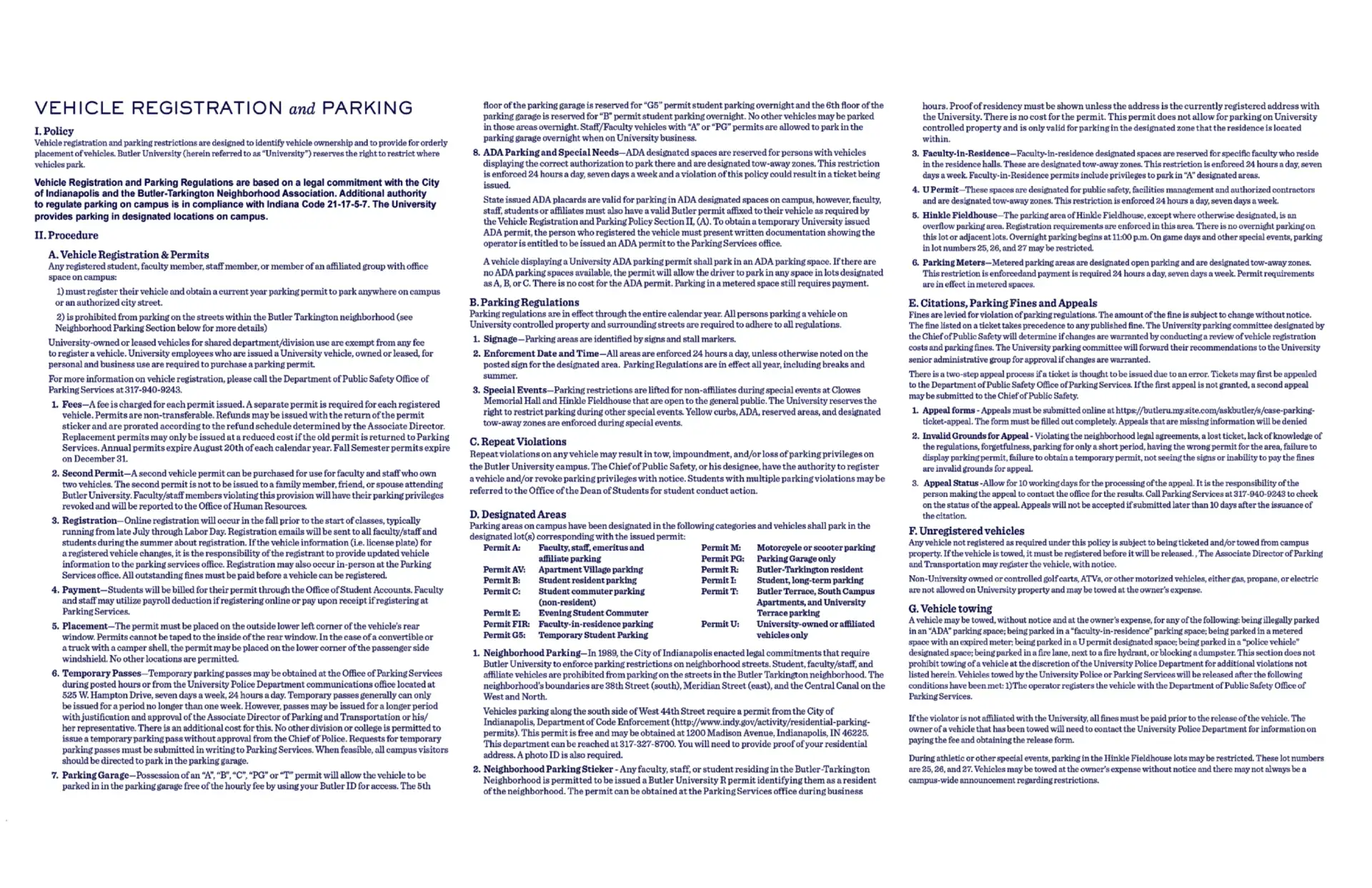 Butler University Parking Map 2025