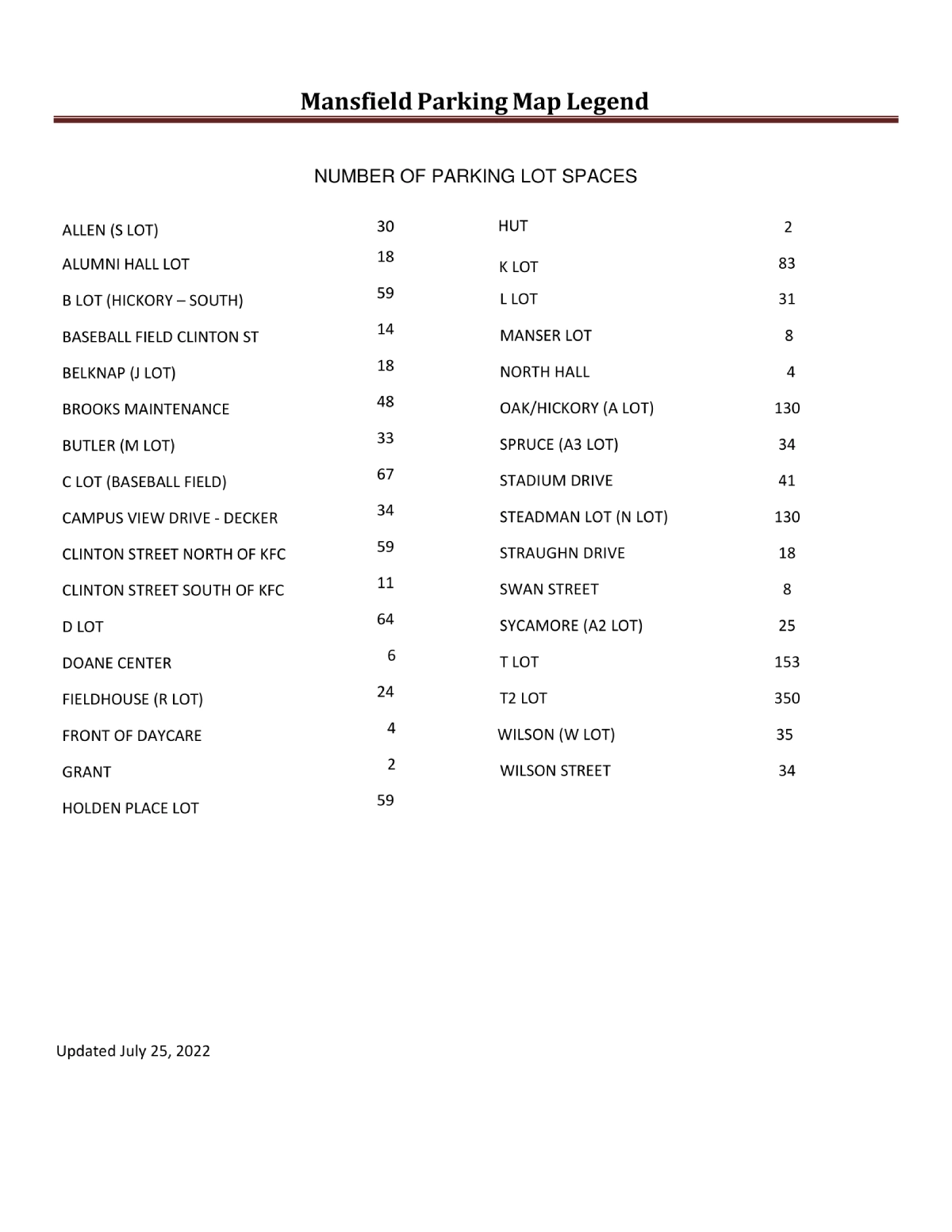 This map illustrates the designated parking areas for faculty, staff, commuters, dorm residents, and visitors. It clarifies permit requirements for lots such as Tri-Level, Sutliff, and the Blue Lot.