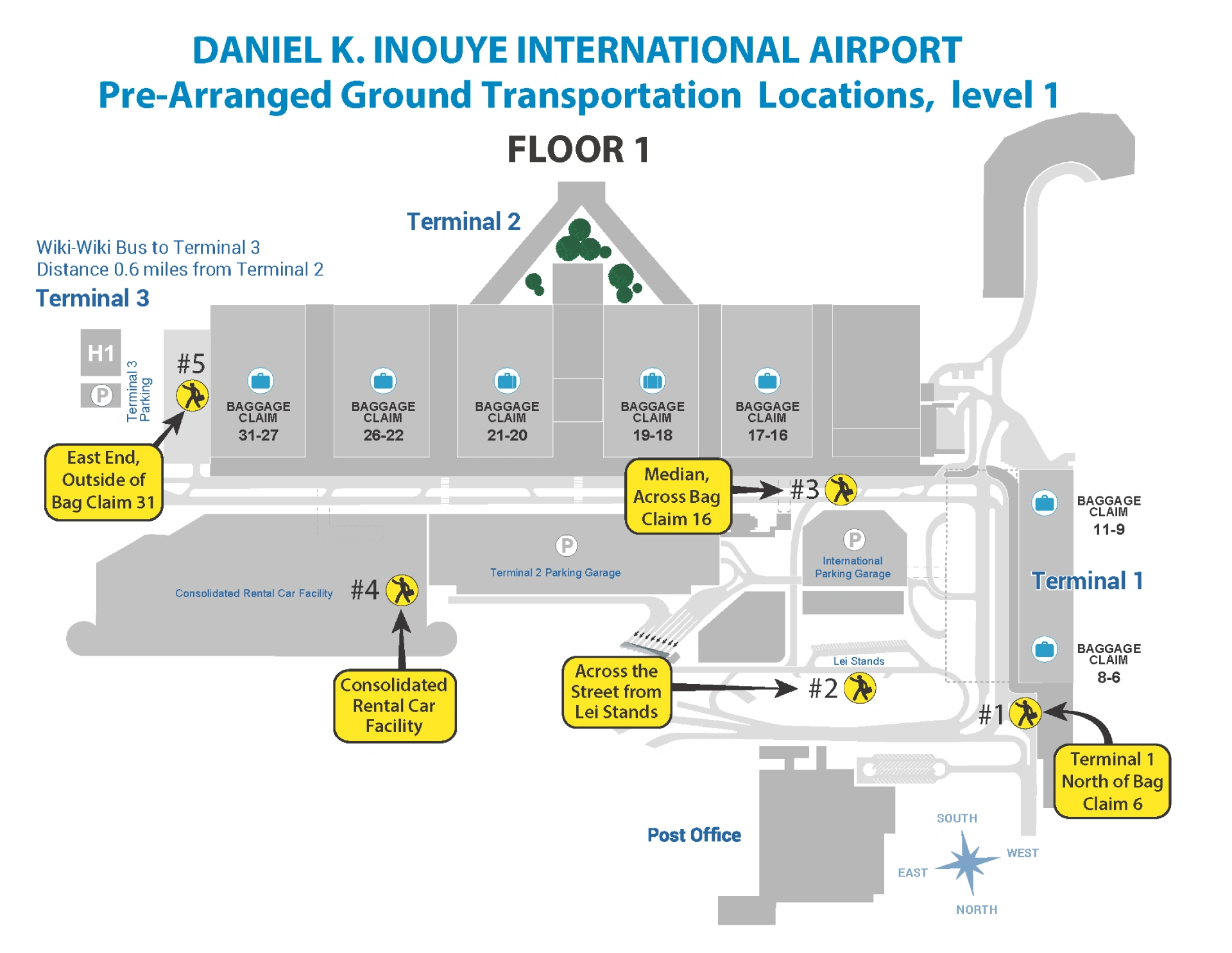 Daniel K Inouye International Airport Pre-Arranged Ground Transportation Map 2025-2022