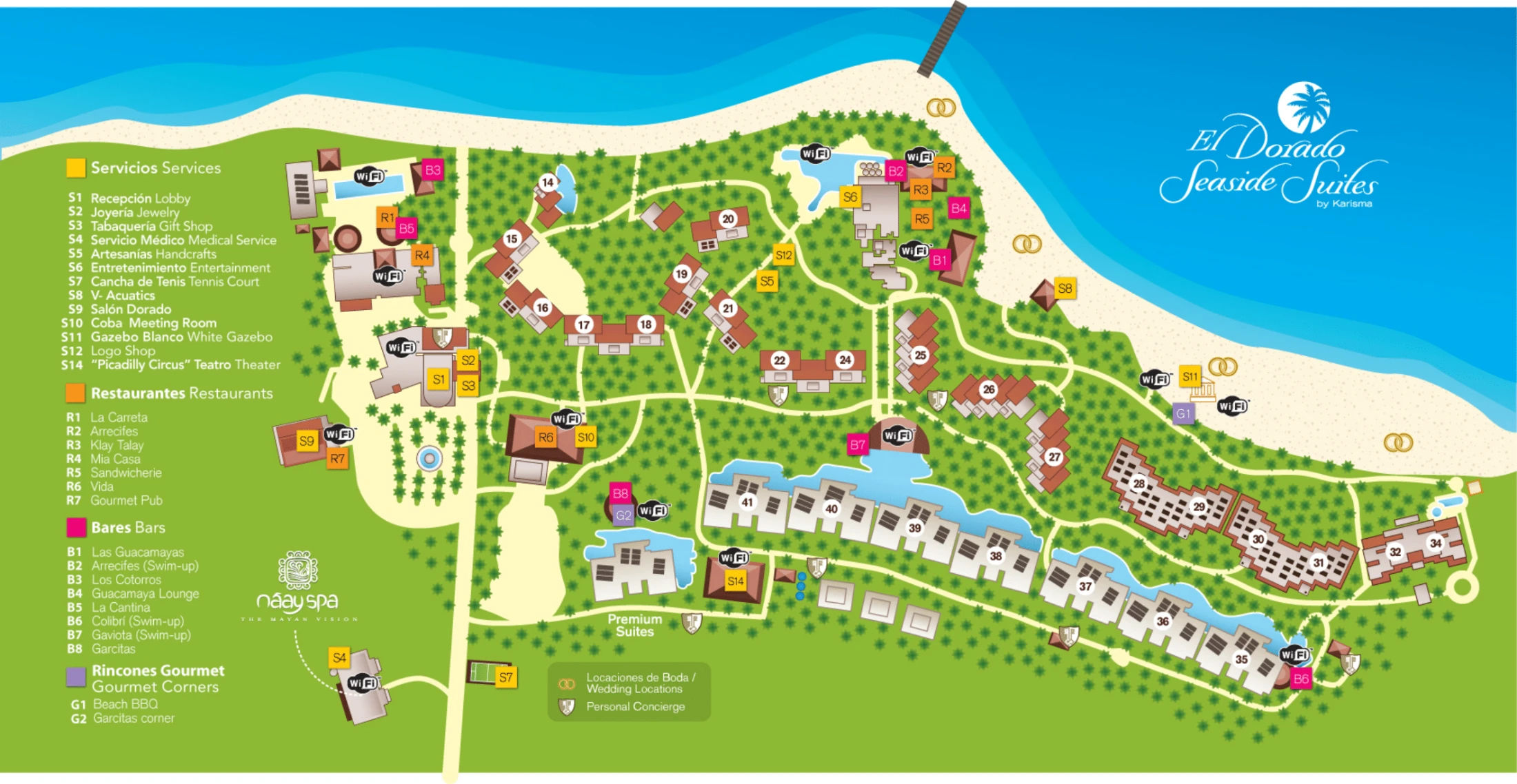 Where is the spa located on the El Dorado Seaside Palms resort map?