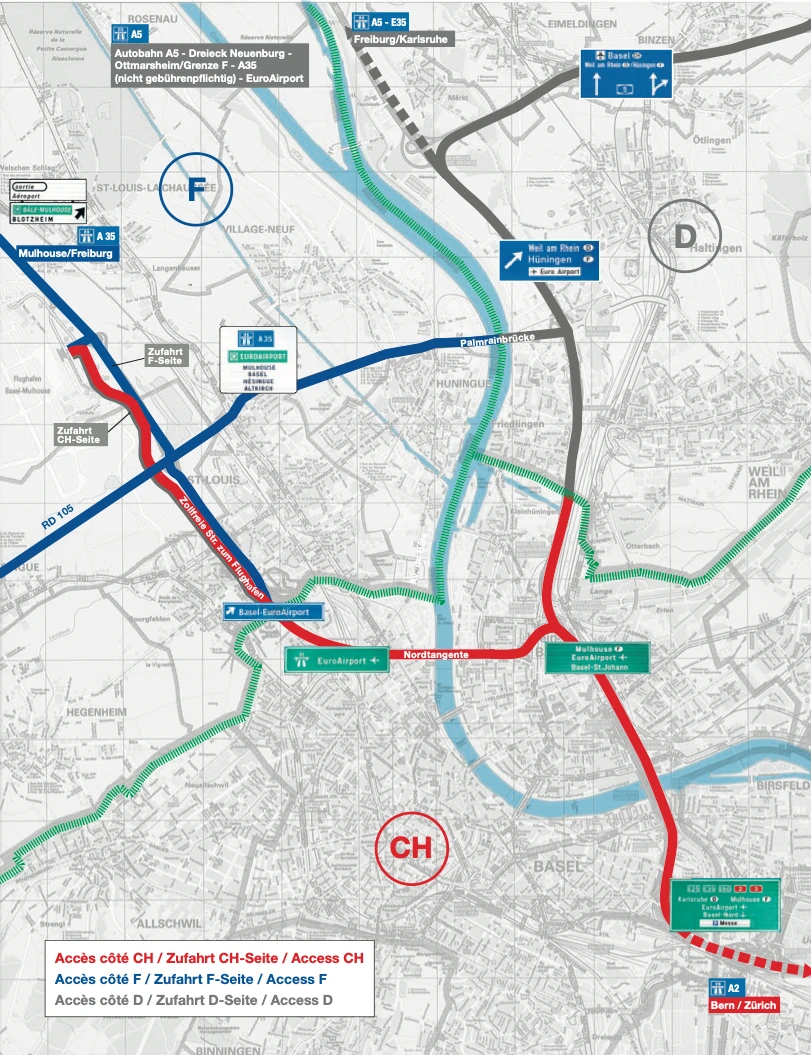EuroAirport Basel Mulhouse Freiburg Airport Access Road Map 2025-2024