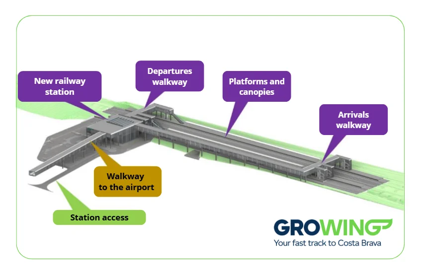 In 2025, Spain’s Ministry of Transport approved the final study and consultation for a new AVE high-speed rail station at Girona-Costa Brava Airport.