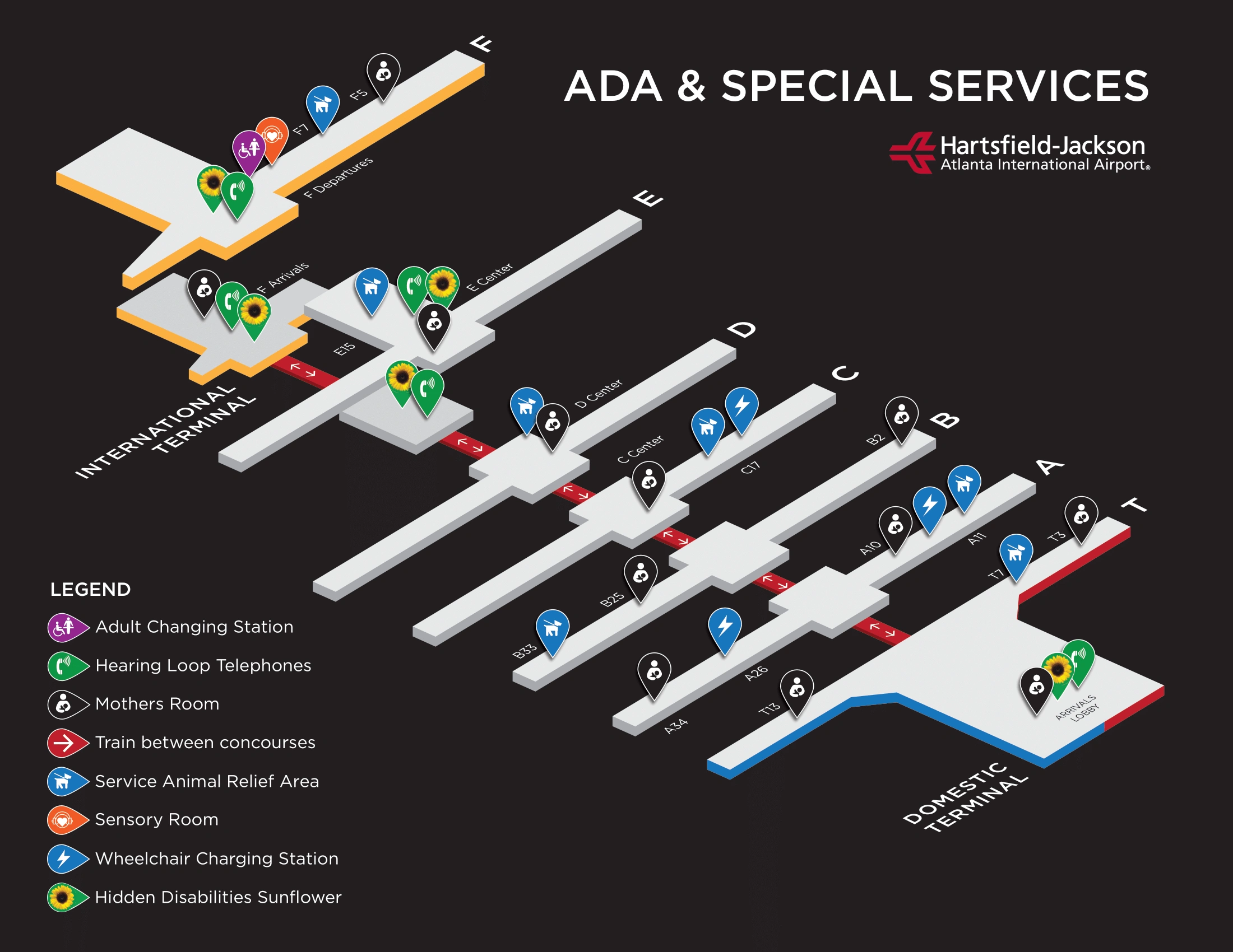 Hartsfield Jackson Atlanta International Airport ADA and Special Services Map 2025-2023