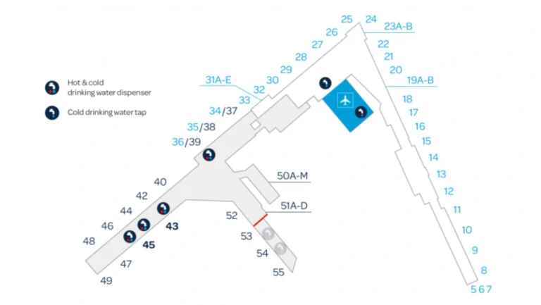 Helsinki Airport Terminal Hot and Cold Water Guide Map 2025-2024