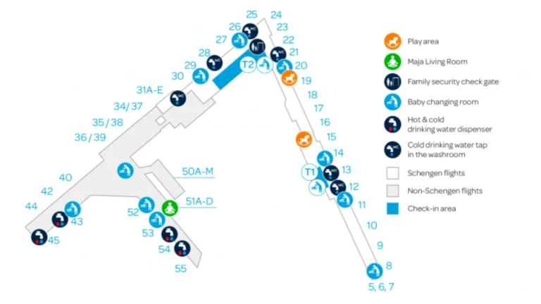 These areas are equipped with toys and activities to keep young travelers entertained while waiting for flights.