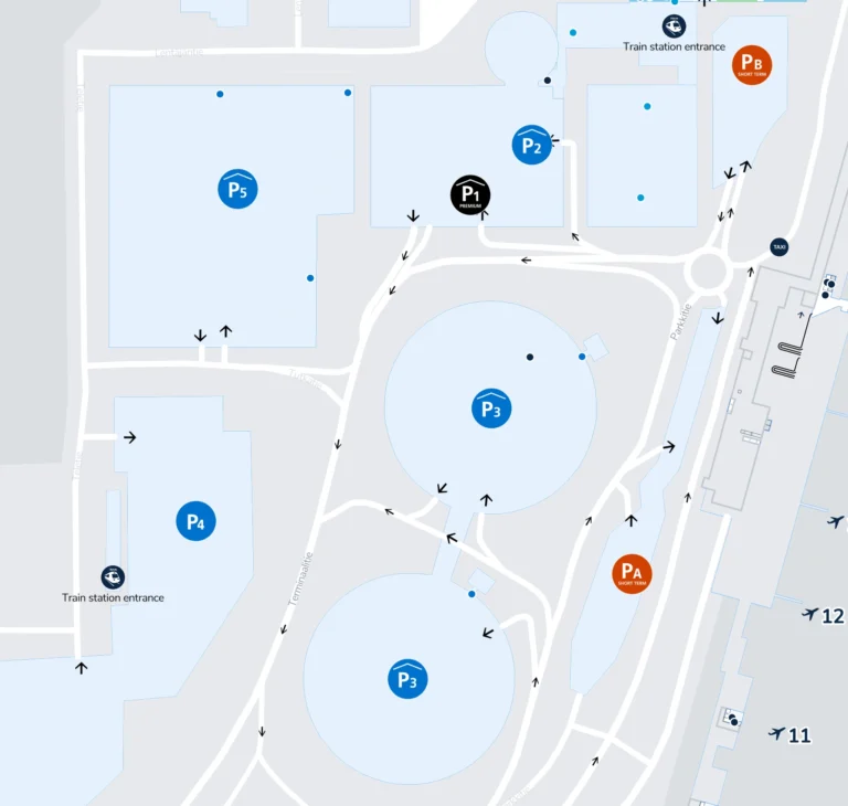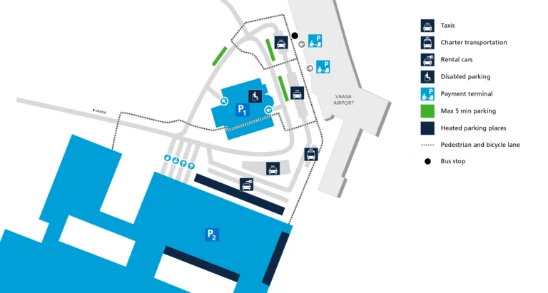 To reach Helsinki Airport parking, follow signs for “P” or “Parking” upon approaching the airport.