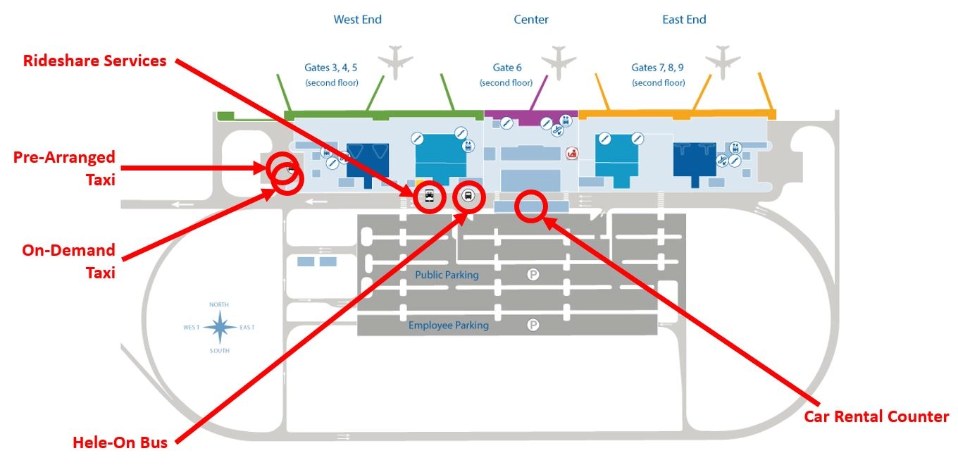 Use this Hilo International Airport Ground Transportation Map to find gates, ground transport, and walking routes, which helps you move smoothly from arrivals to taxis or shuttles.