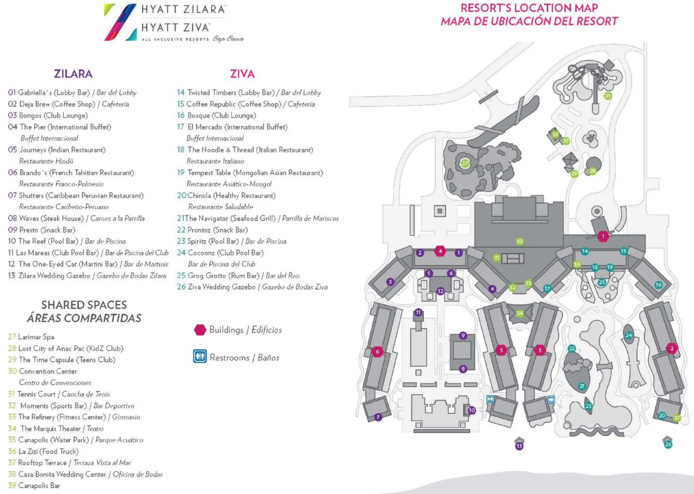 Below is the official map version released for Hyatt Zilara Cap Cana in 2020-2025.
