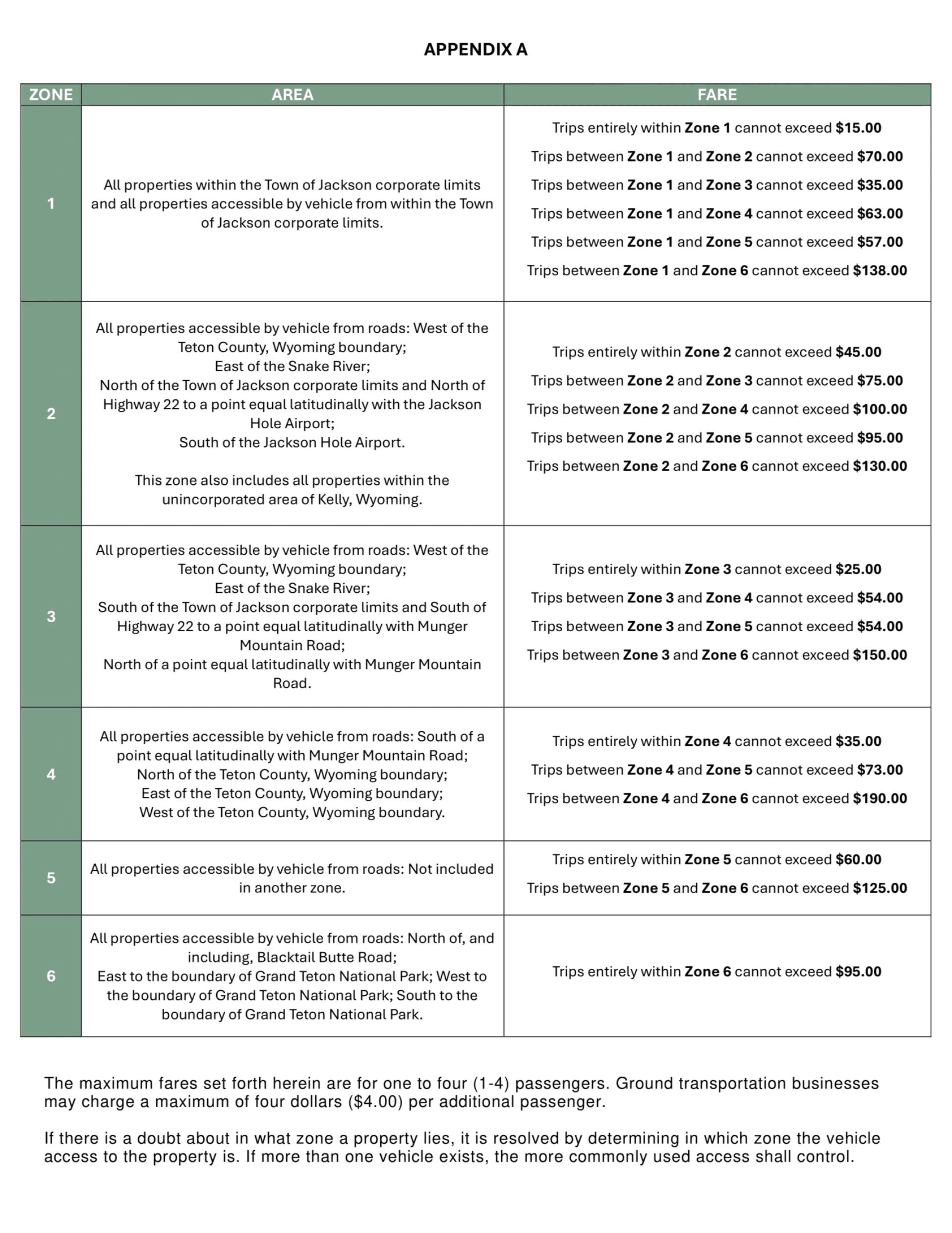 Jackson Hole Airport Taxi Fare Map 2025-2024