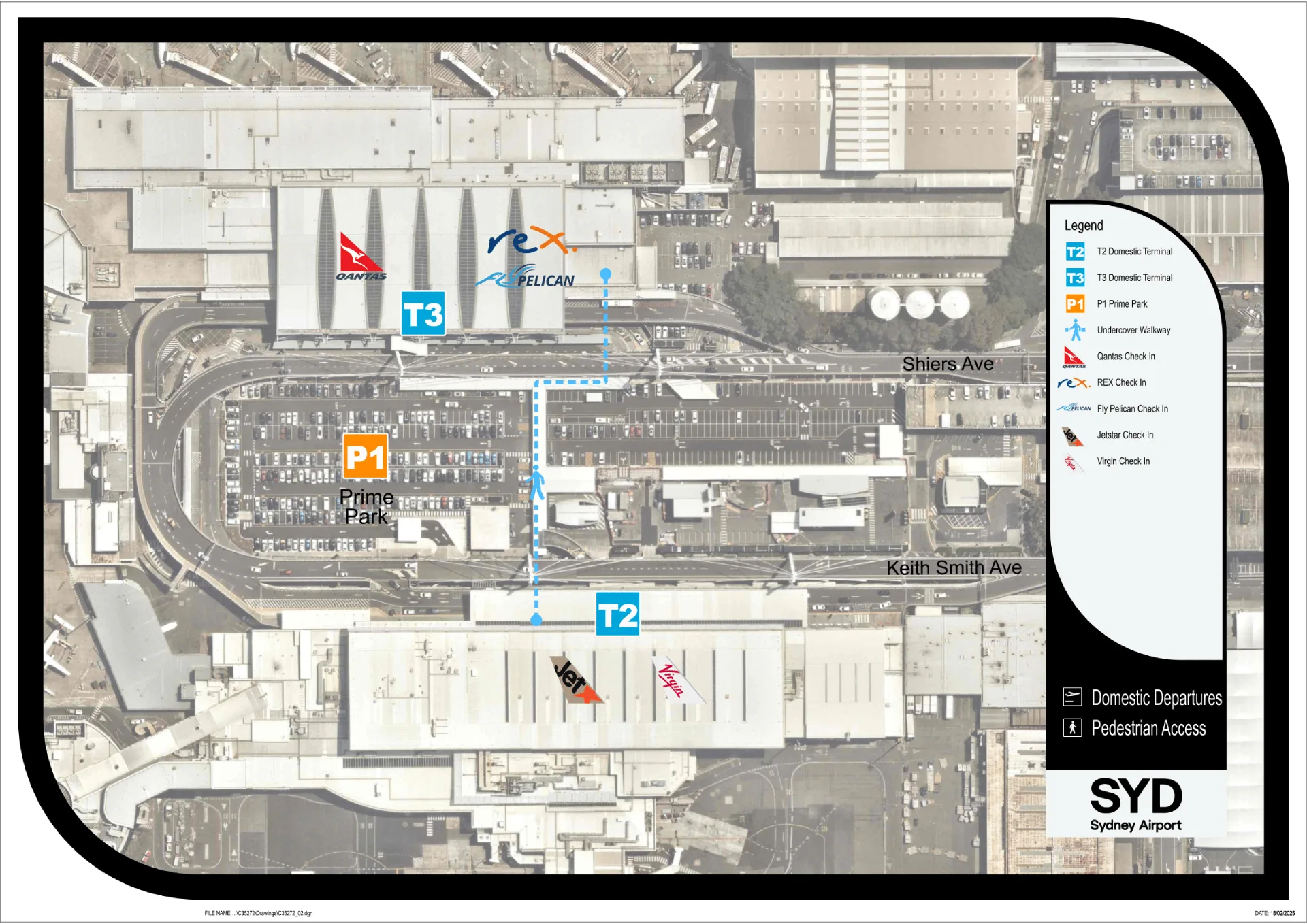 Kingsford Smith International Airport T3 Pedestrian Access Map 2025-2023