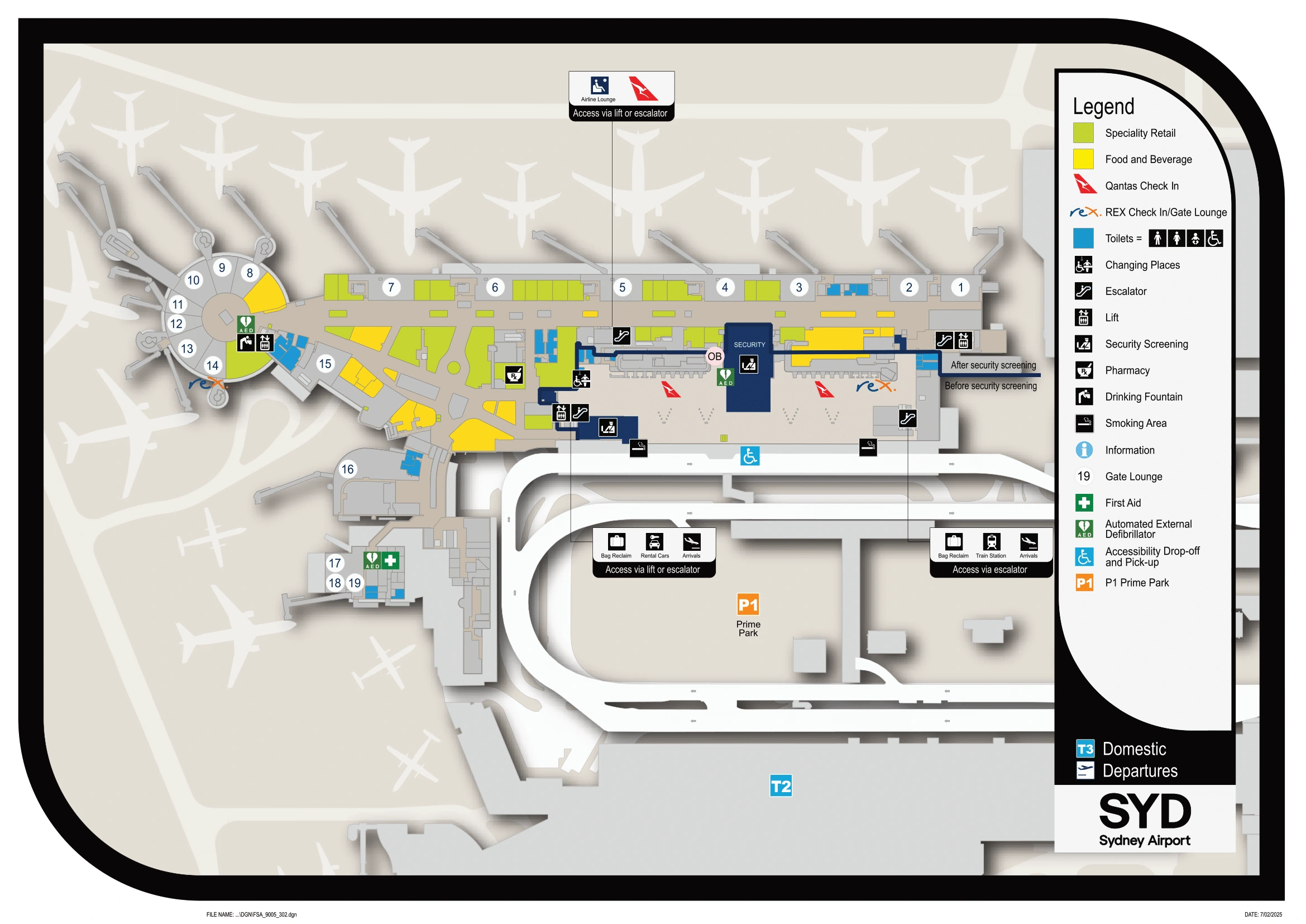 Kingsford Smith International Airport Terminal 3 Domestic Departure Map 2025