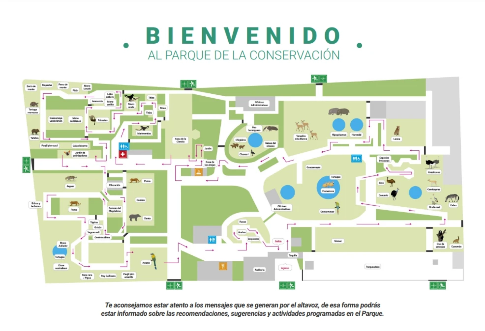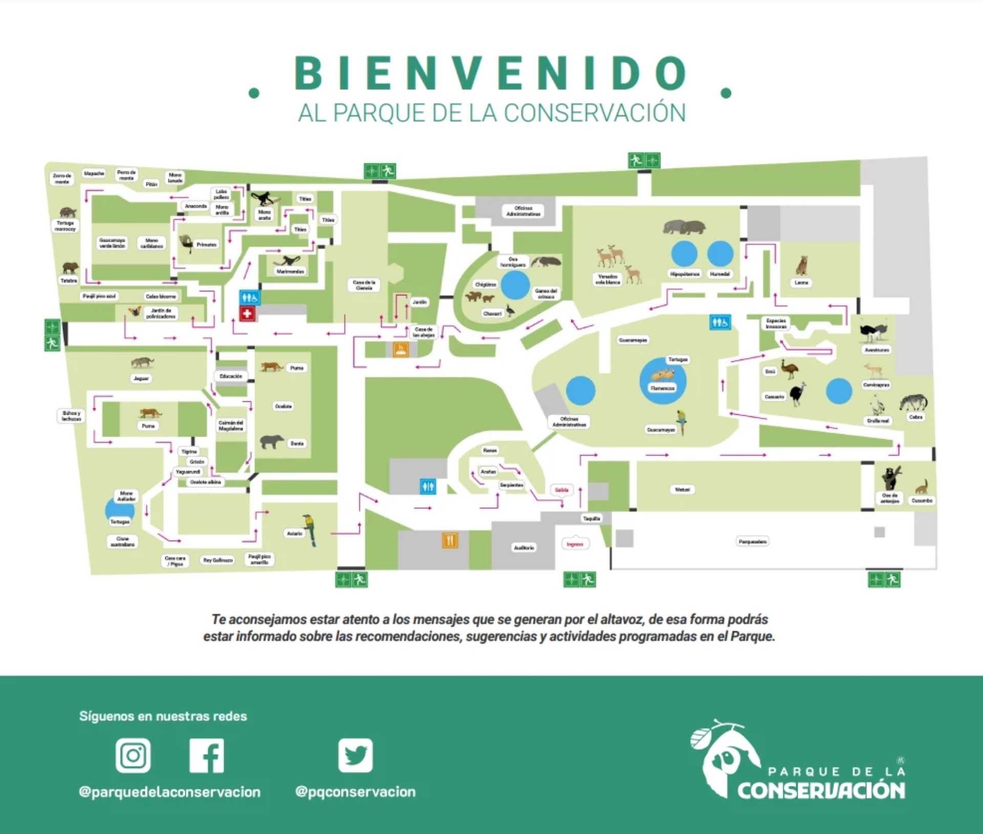 A map of Parque de la Conservación is available for download from the official website and is typically accessible at the entrance to help visitors navigate the park’s zones and animal exhibits.