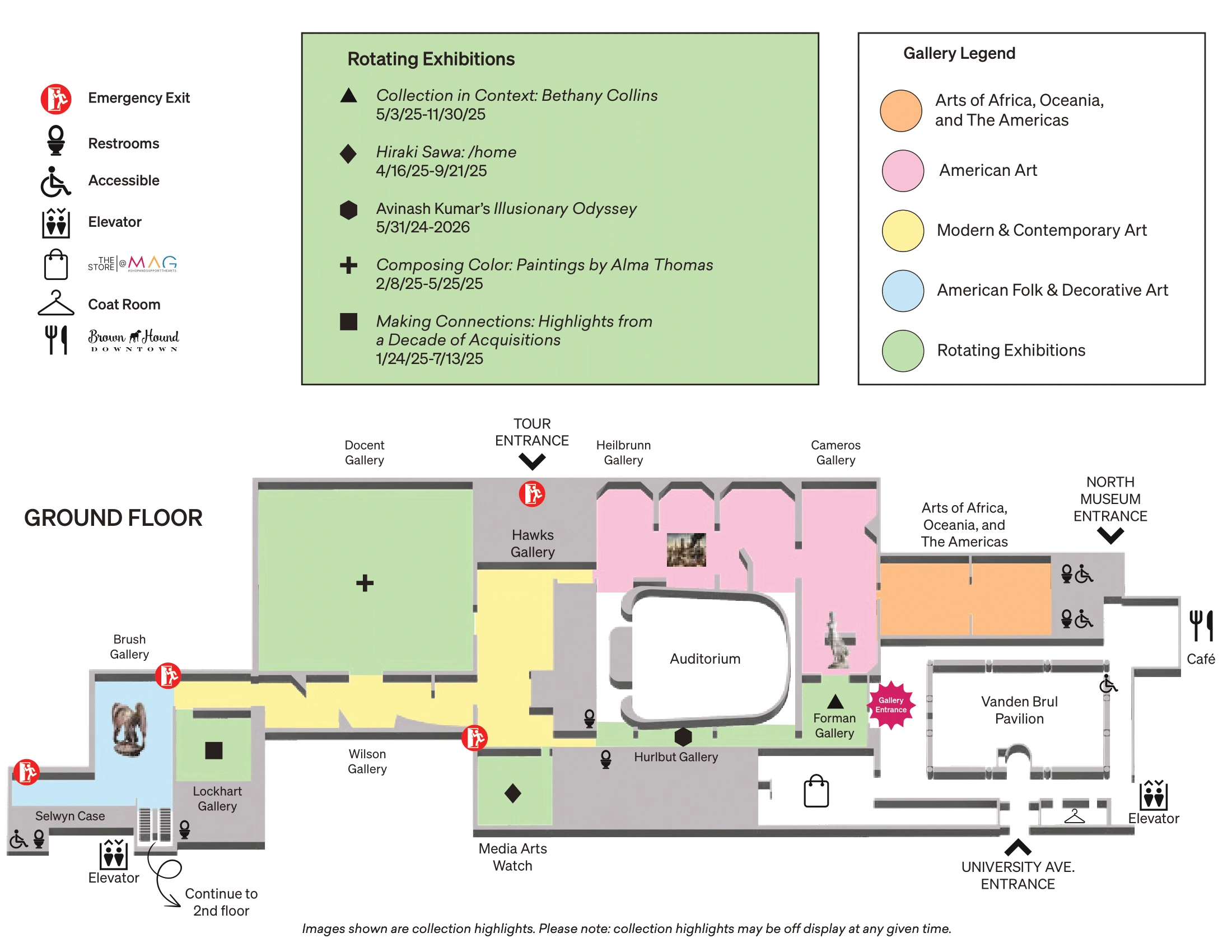 This updated Rochester Museum of Fine Art Map makes navigating exhibits like The Bernier Room and The Carnegie Gallery a breeze. Find your way to featured installations, public art spaces, and even the rotating mural wall tucked behind the James W. Foley Memorial Community Center.