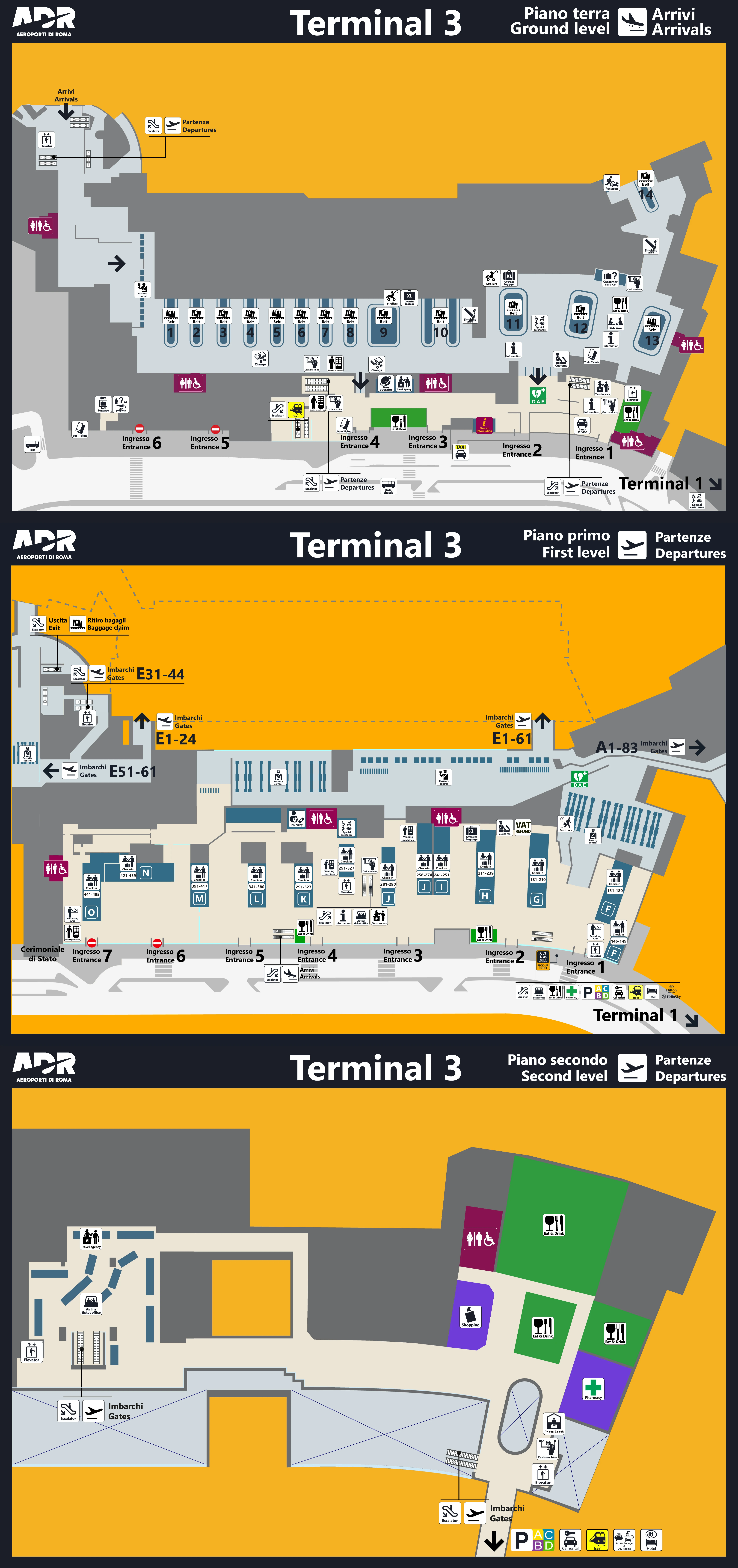 Rome–Fiumicino Leonardo da Vinci International Airport Terminal 3 Map (Most Up-To-Date)
