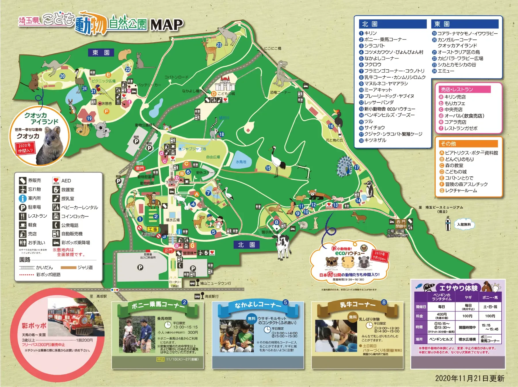 Saitama Children’s Zoo Map 2020 update was the introduction of quokkas, making it the only zoo in Japan to feature these rare Australian marsupials. The new quokka exhibit was launched in celebration of the zoo’s 40th anniversary and quickly became a major attraction. Additional updates included enhanced animal interaction events and expanded seasonal activities for visitors of all ages.