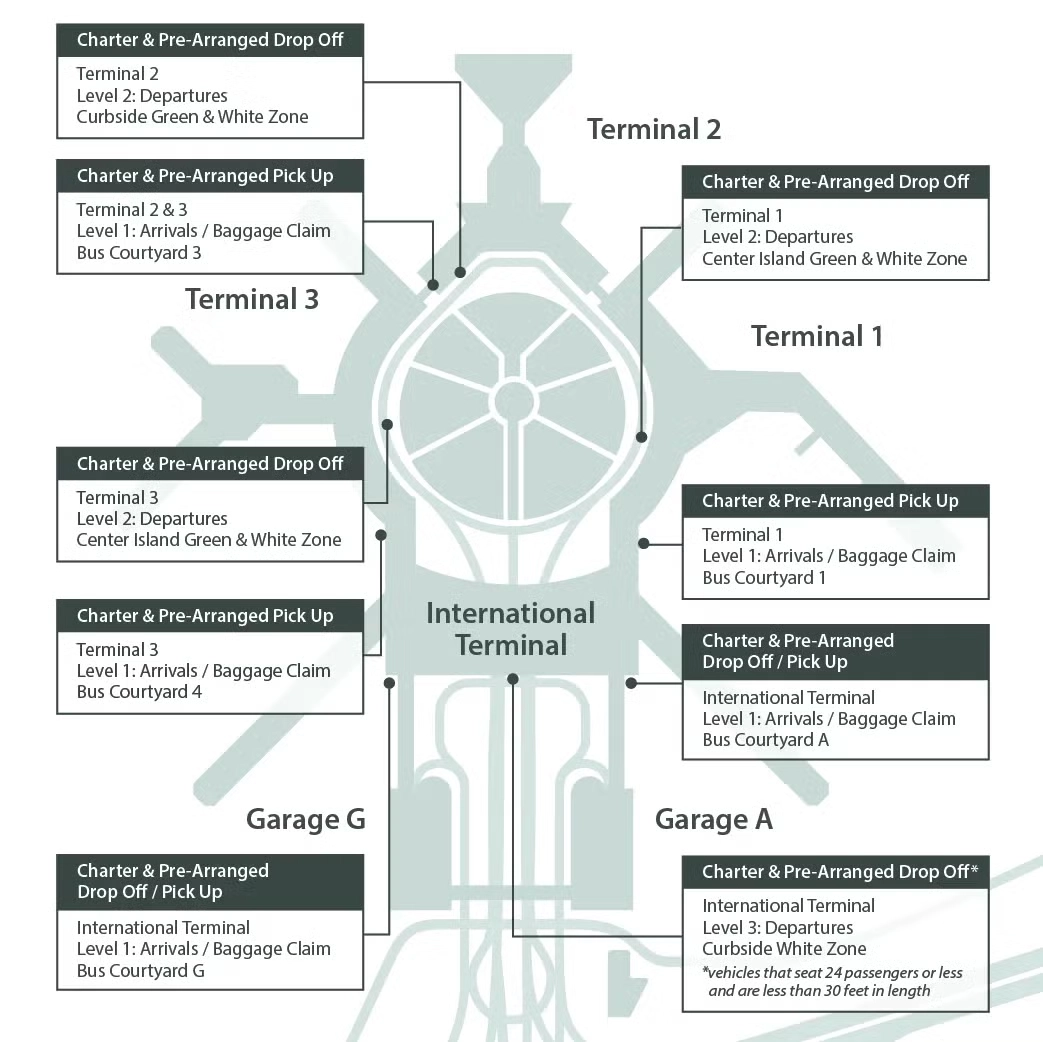San Francisco International Airport Charter Pick Up Areas Map 2025