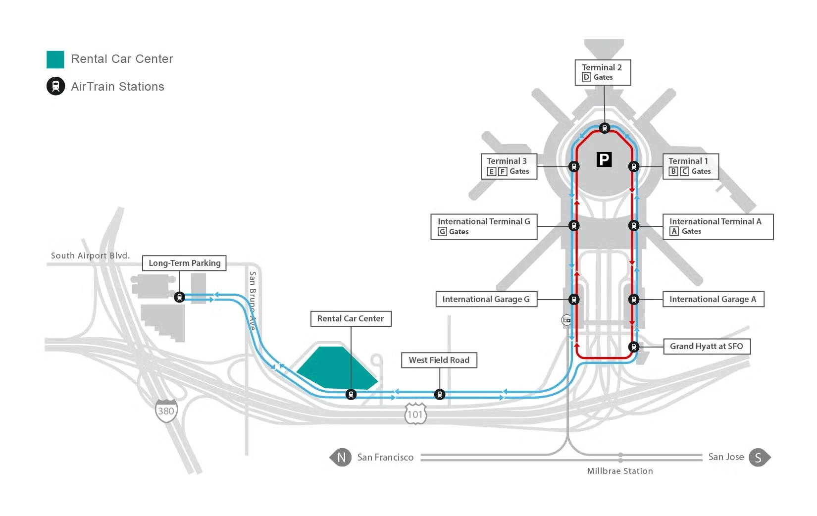 San Francisco International Airport Getting To Rental Car Center Map 2025