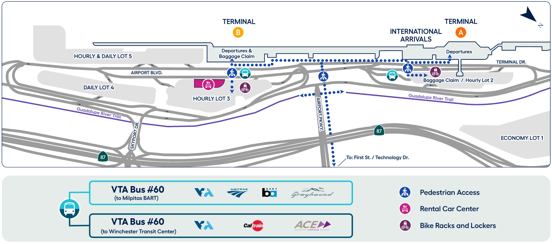 San Jose Mineta International Airport Terminal A Ground Transportation Map 2025