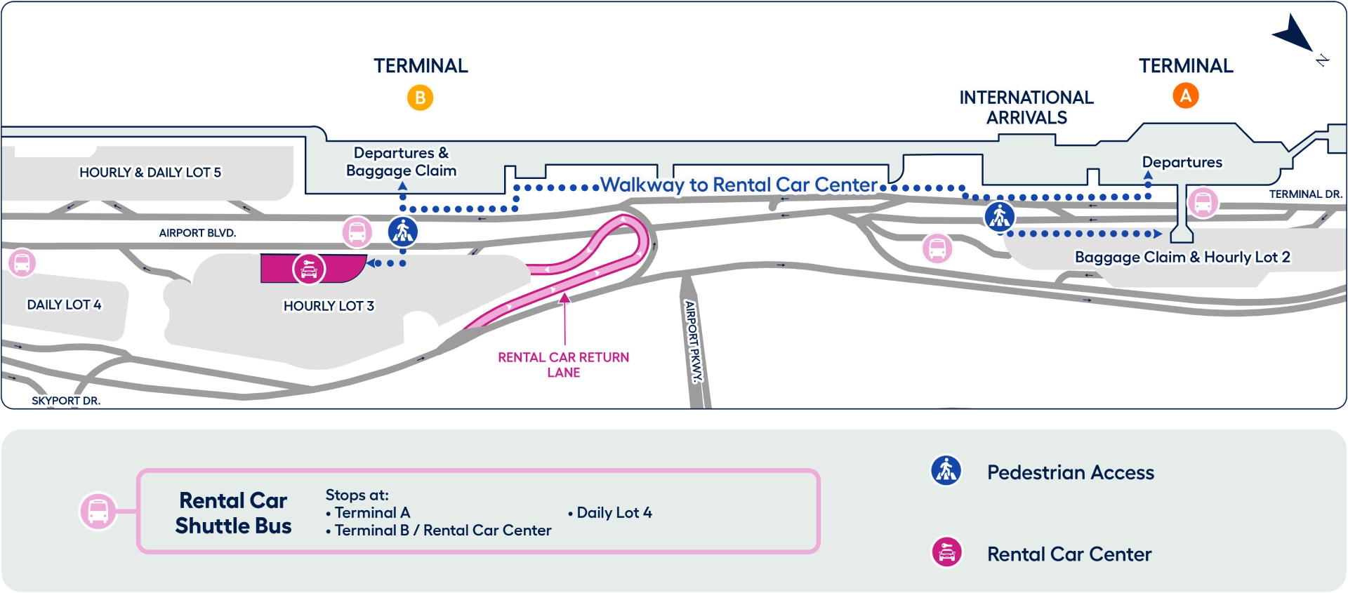 San Jose Mineta International Airport Rental Car and Shuttle Bus Map 2025