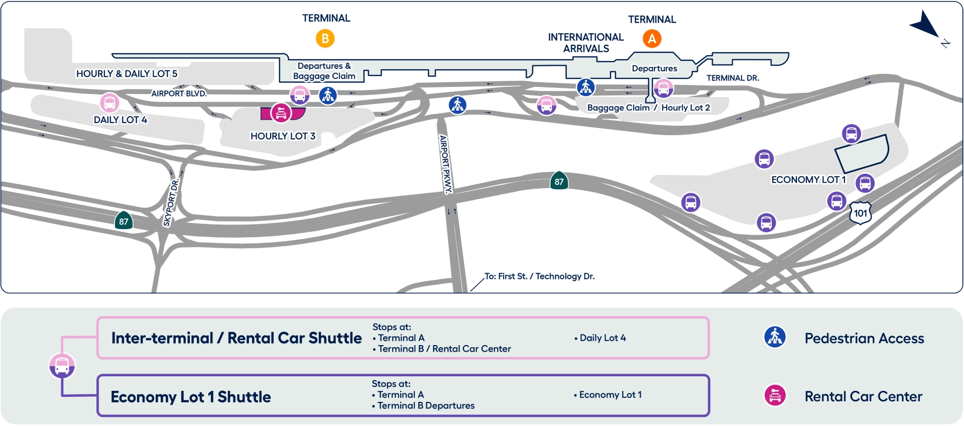 San Jose Mineta International Airport SJC Shuttle Bus Map 2025