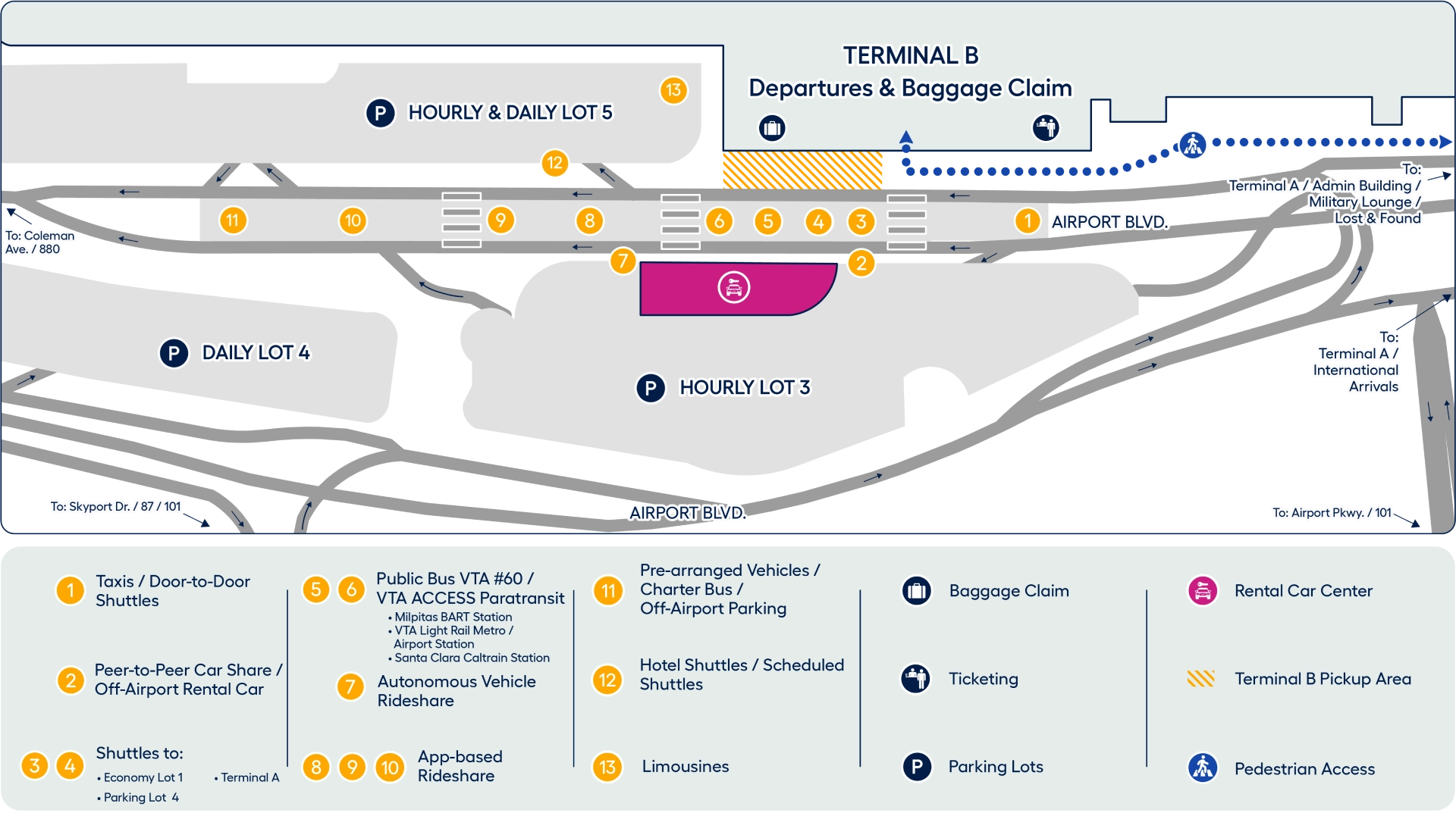San Jose Mineta International Airport Terminal B Ground Transportation Map 2025