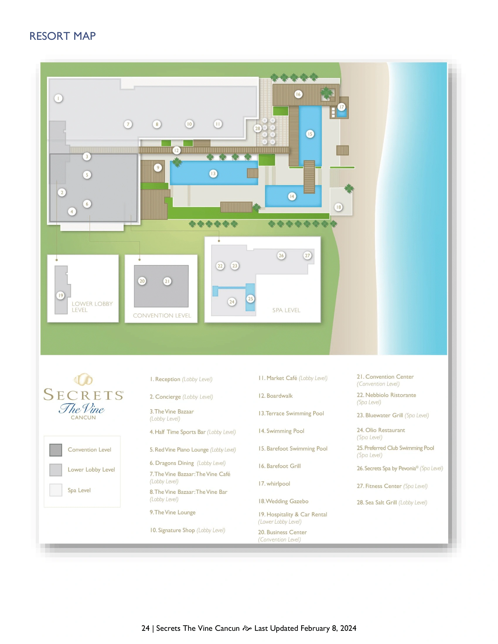 Below are the official map versions released for Secrets The Vine Cancun Map from 2024 to 2016.