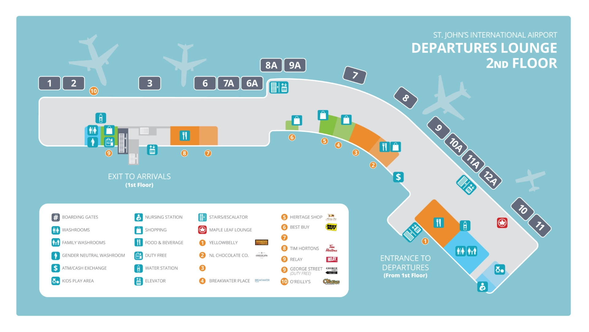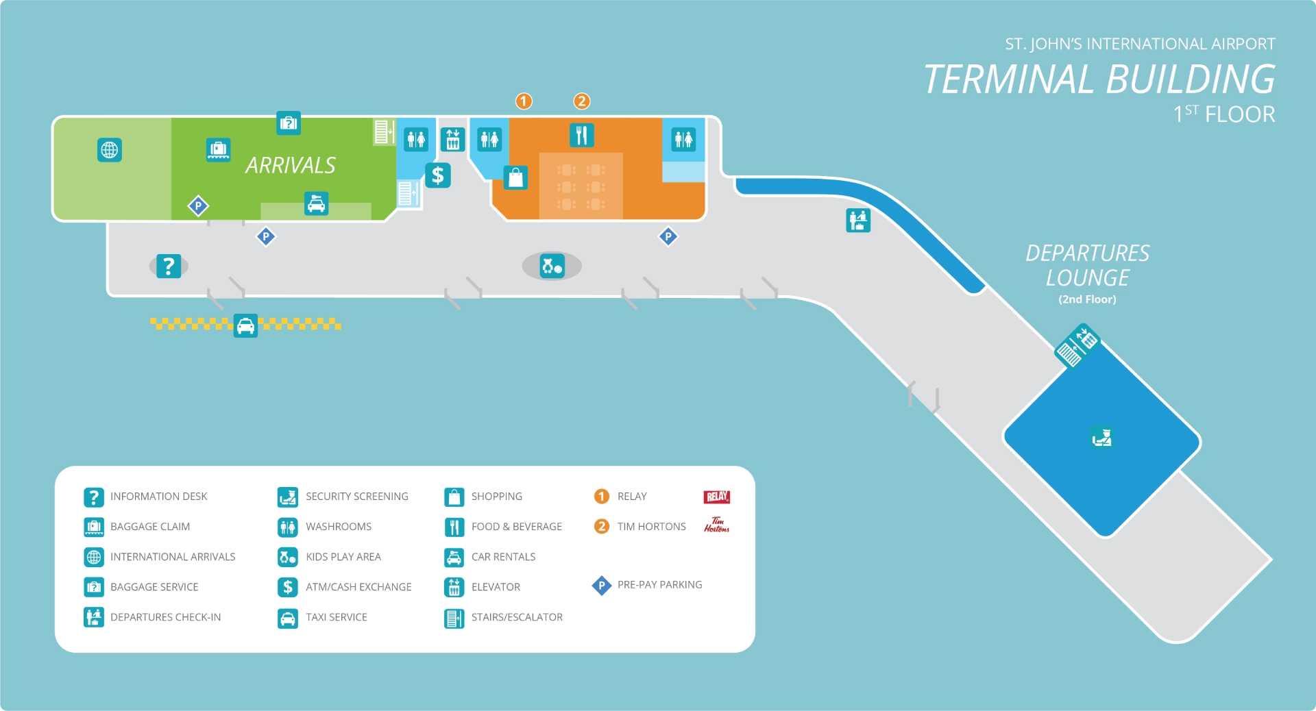 Open the St. John’s International Airport Terminal Map to plan your walk from check-in to gates with ease.