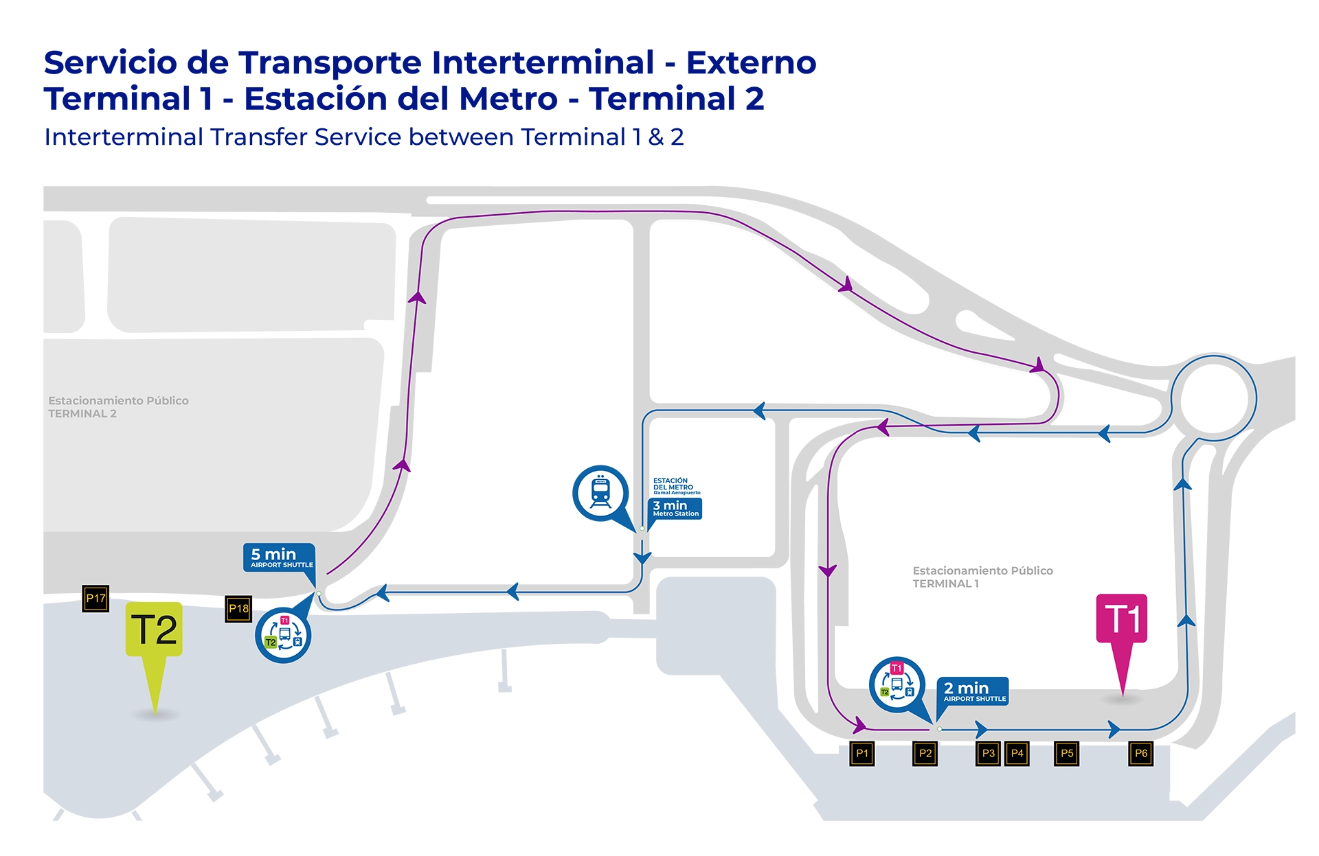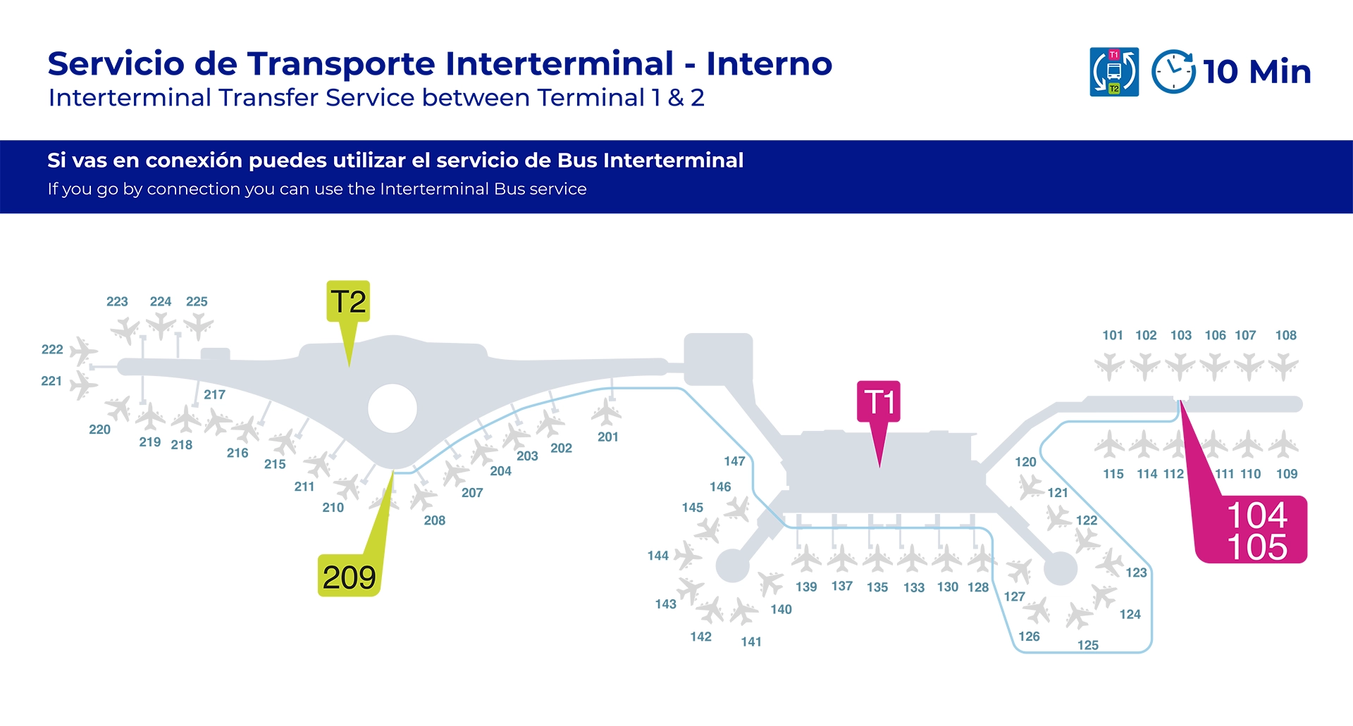 In 2025, Tocumen International Airport operated a free interterminal shuttle service linking Terminal 1 and Terminal 2.