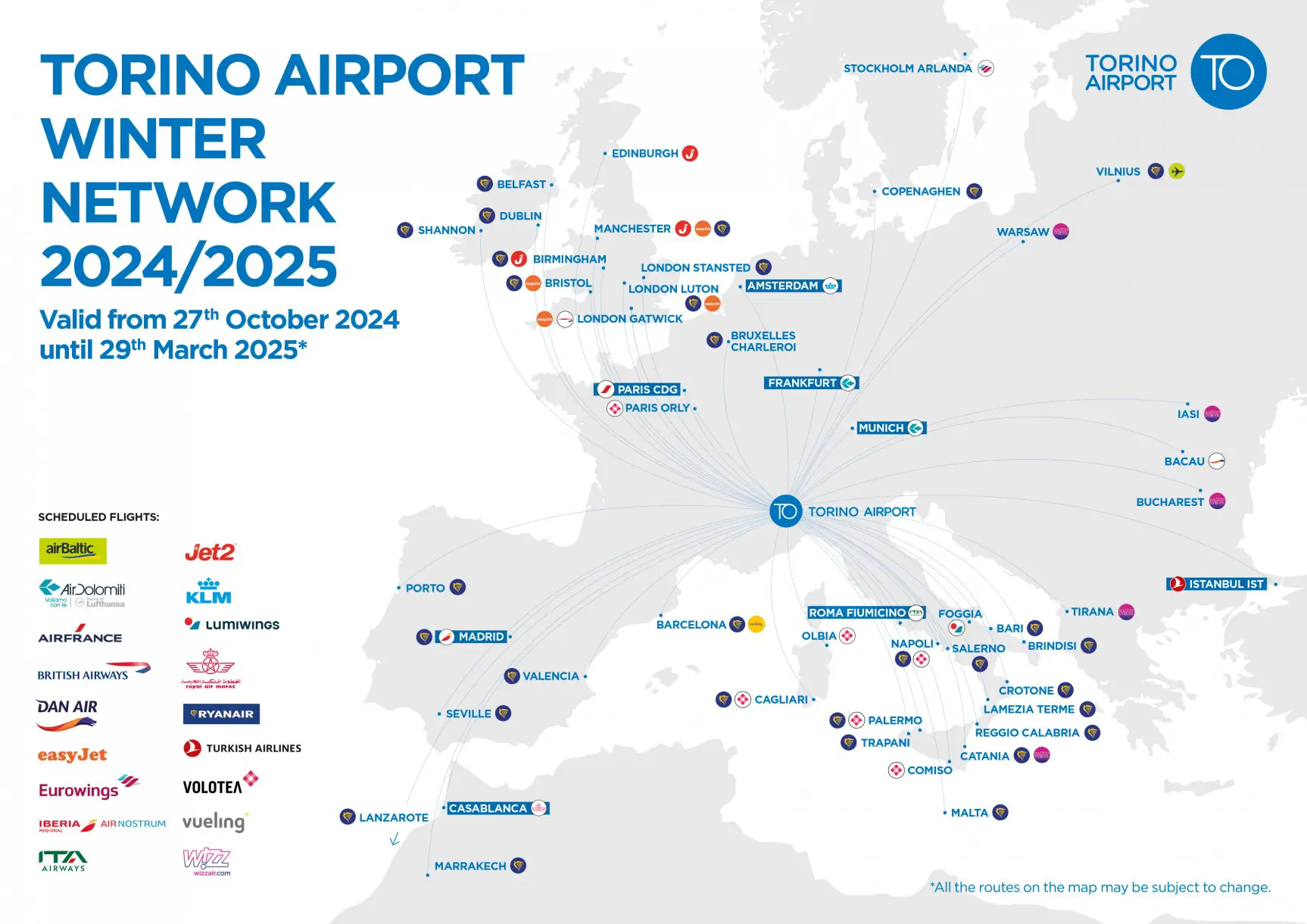 Torino Airport Terminal – Winter Network Map 2025-2024
