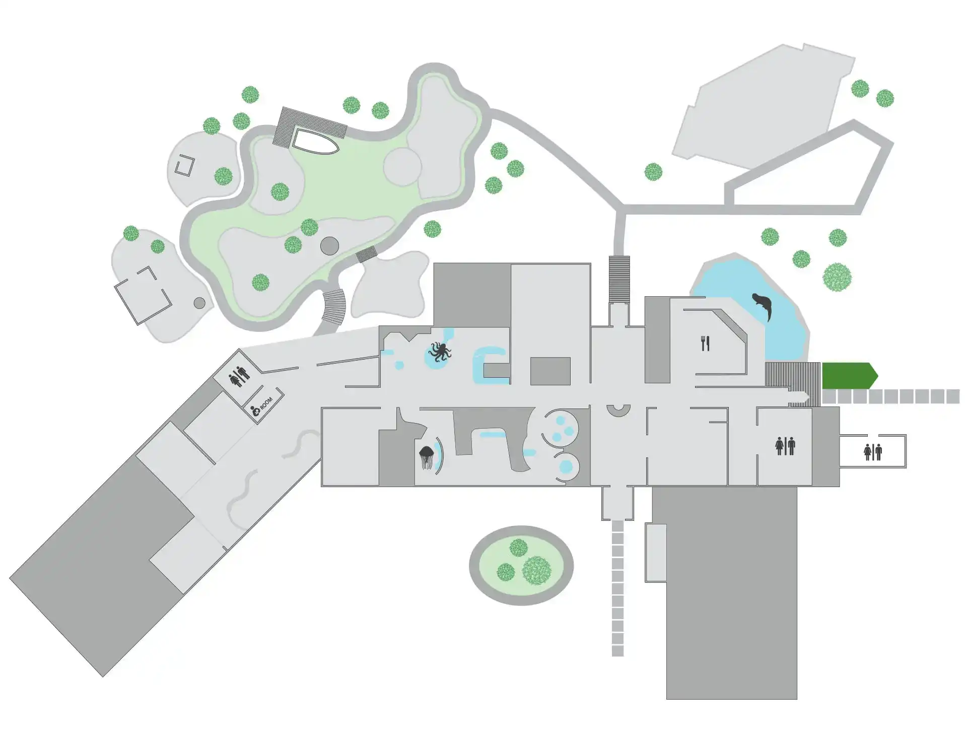 The most up-to-date Virginia Aquarium and Marine Science Center Museum Map helps you get straight to highlights like the Red Sea Tunnel, the touch pools in the Bay & Ocean Pavilion, and the Osprey Cafe for a snack with a view.
