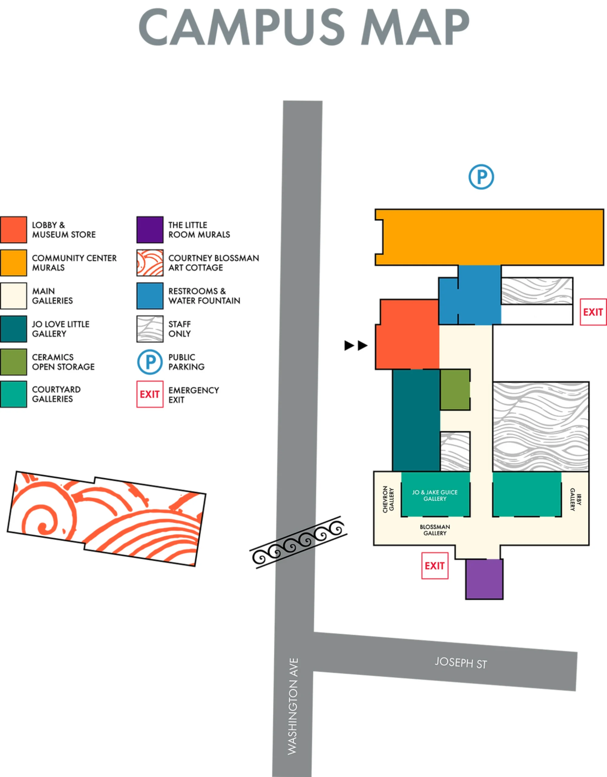 The most up-to-date Walter Anderson Museum of Art Map makes it easy to navigate the Little Room murals, the Ocean Springs Community Center, and the adjoining Shearwater annex.