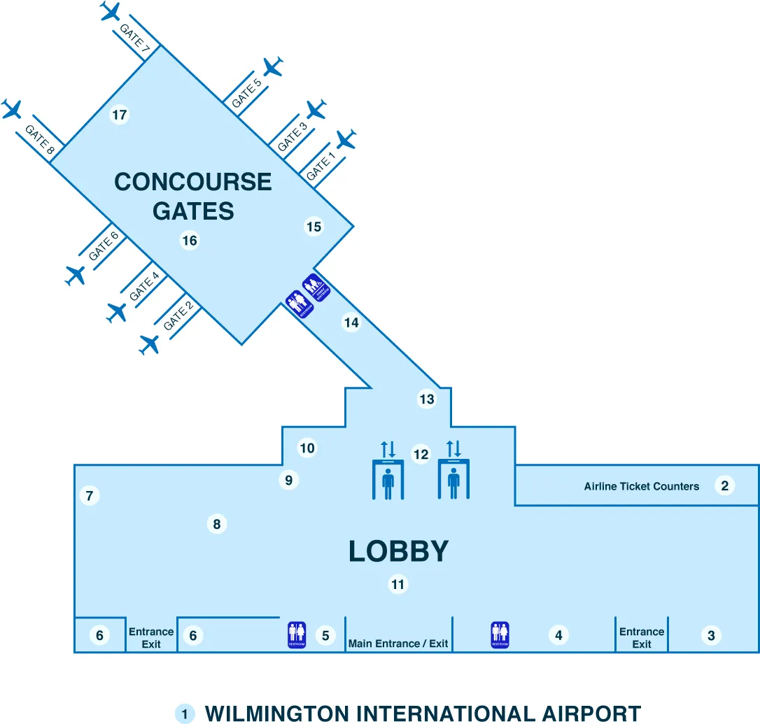 Wilmington International Airport Terminal Concourse Map 2025-2024